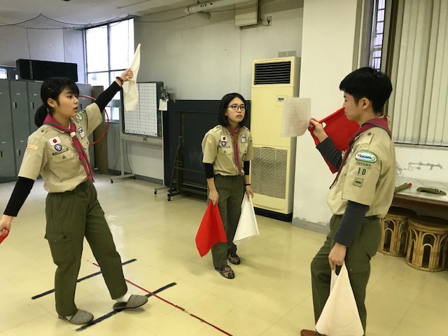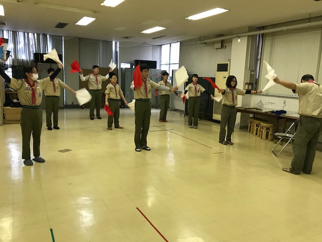 ボーイ隊の手旗にも参加、復習にもなりますね