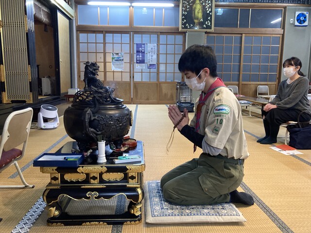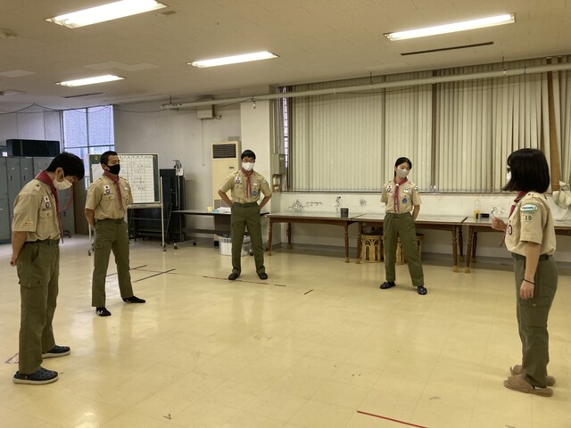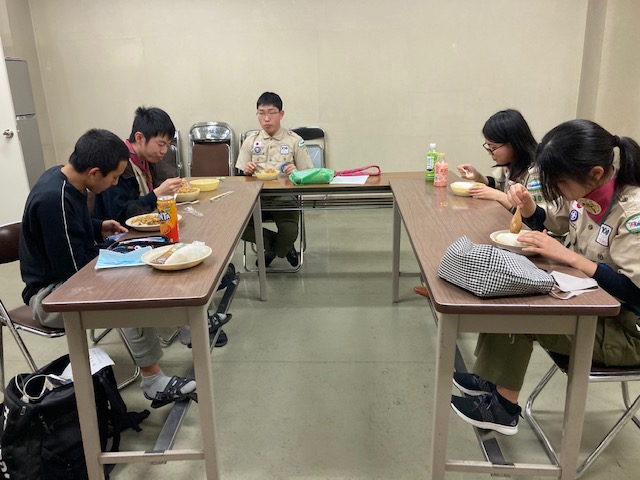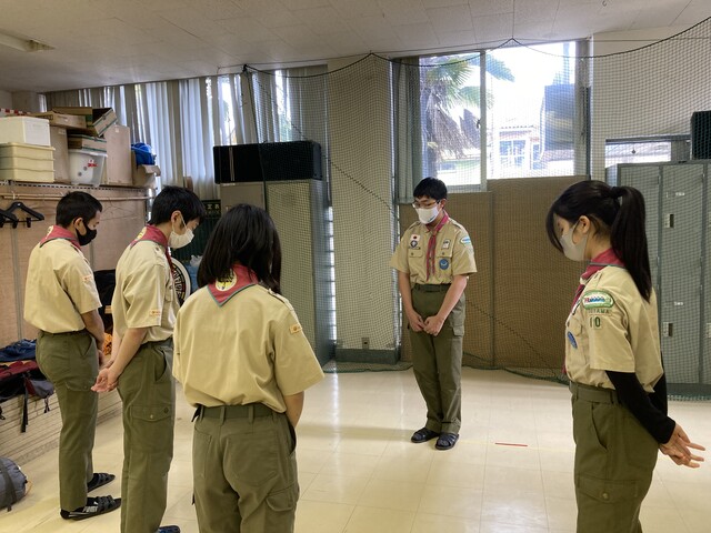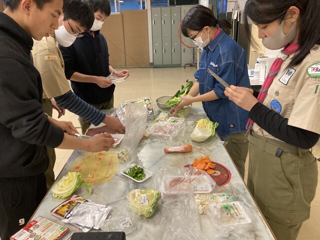 20213月30 ベンチャー隊舎営 (3月29~30日) 4月に県大会、そして4月からの活動計画のために、スカウトハウスで、一泊舎営活動を行いました。午後3時スカウトはそれぞれ公共交通、自転車を利用して集合です。まずは、食材の購入、メニューは回鍋肉とお鍋とのこと。夕食準備まで、1級、菊章に向かいスケジュールを検討、今年度やってみたいことを書き出し盛り上がりました。開会セレモニー初めての、スカウッオン自分たちで会議を進めます県大会のコース検討夕食つくり開始ソロテント使用 1階男子チーム2階は女子朝食つくり掃除をして、気持ちよく閉会セレモニーを