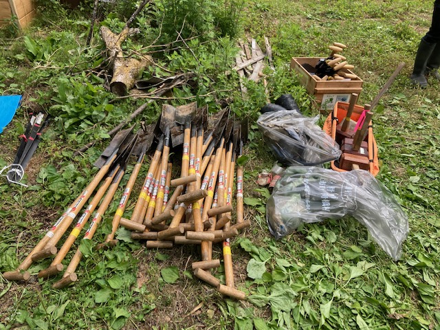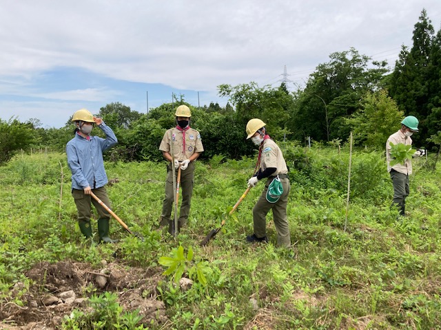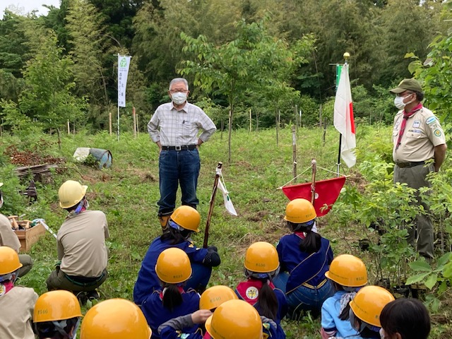 20216月6 オイスカ植樹 6月6日、立山町天林地区でオイスカの植樹活動に参加。今回は感染対策として1時間の活動を厳守(10時から11時)コナラ、クヌギ、ミズナラ、クリ、山桜の5種類100本を、みんなで協力して植えました。植えた後はカブ隊長による森林教室で木を植える大切さを学びSDGsのお話も聞きました。これからも、陸の豊かさ、海の豊かさを守るために続けていきましょう。植える5種類100本検温、消毒、受付、ヘルメットの配布オイスカ久和会長のあいさつ植樹開始VSは何を植えたかな?カブ隊長の森林教室のサポートマスク有り、一瞬無しで、記念撮影2018年に植えた木、順調に育っています。