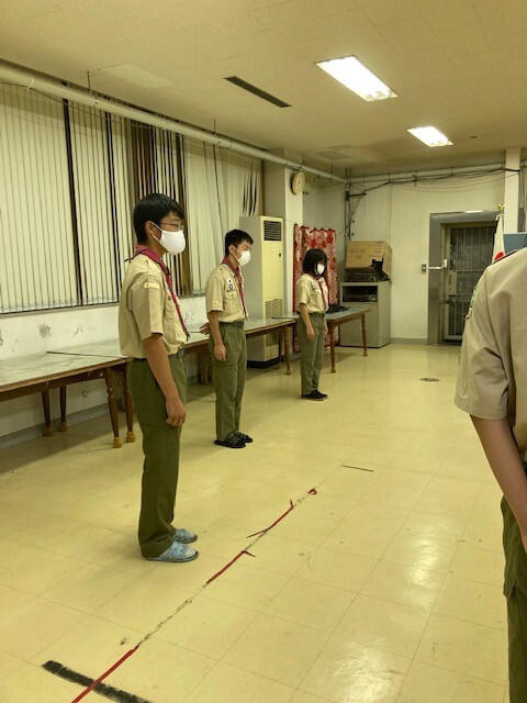 20217月4 7月ベンチャー隊会議 隼の資料、一級挑戦キャンプの日程、団夏季野営、話し合うことがたくさんあります。今回はボーイ隊のグリンバーと一緒に開会,閉会セレモニーを行いました。開会セレモニー猿倉で、7月17,18日に泉くんの一級挑戦キャンプを行うことが決まりました。久郷リーダーからの差し入れのお菓子!おいしかったです(*^^*)