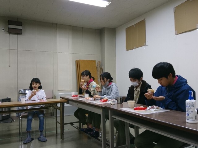 スカウトハウスに戻り、温かい飲み物とお菓子を!!