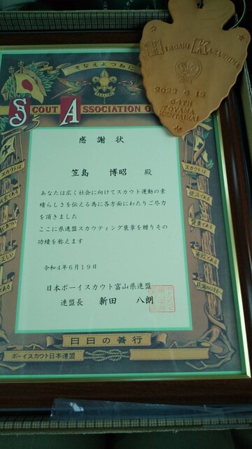 笠島隊長が表彰されました、おめでとうございます!!
