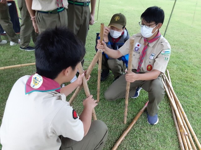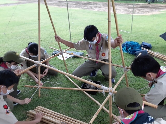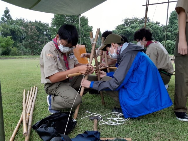 20228月20 ボーイ隊活動に参加 20日からの国少での団合同夏季野営がコロナで中止になり、神通健康スポーツ公園でのボーイ隊活動に参加しました。8時半からの本部テント設営~14時の解散までベンチャーとして頑張っていました。今にも降りそうな曇り空 開会セレモニー本部テント タープに続き、立ちかまどの作成(前回の反省もかねて)好調です(^^)/次は食堂テーブルお昼ご飯を配っています 雨がひどくなり、スカウトハウスへ移動18NSJに参加の班長、次長から、感想を聞きました差し入れのクズバーをいただきます(黙食です)閉会セレモニーおきての唱和で解散