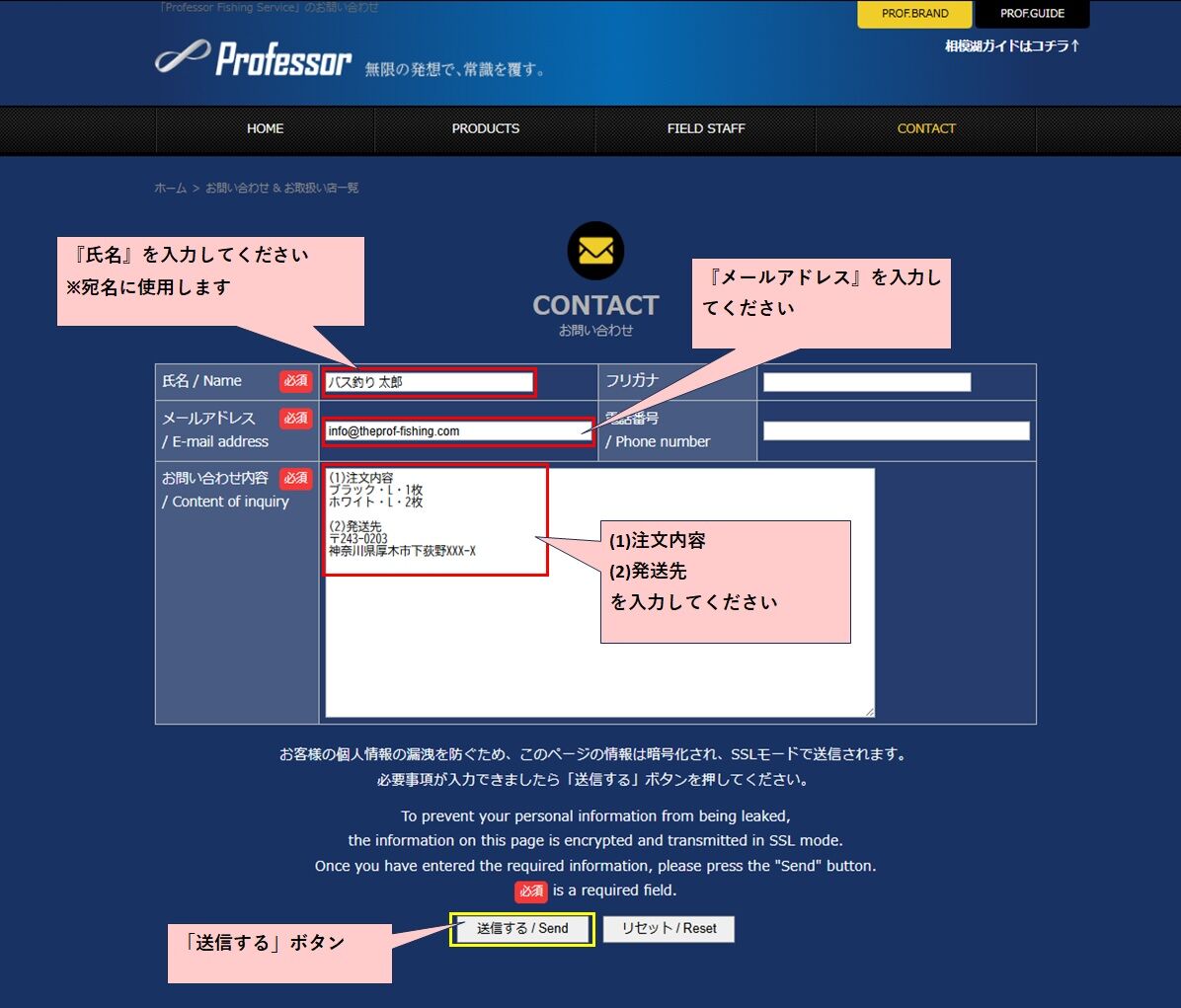 ご注文は、以下手順に沿って Professorホームページのお問い合わせフォームより、お願いいたします。