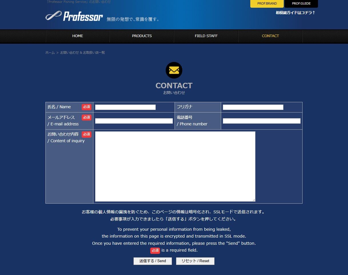 Professorホームページのお問い合わせフォーム にアクセスします。