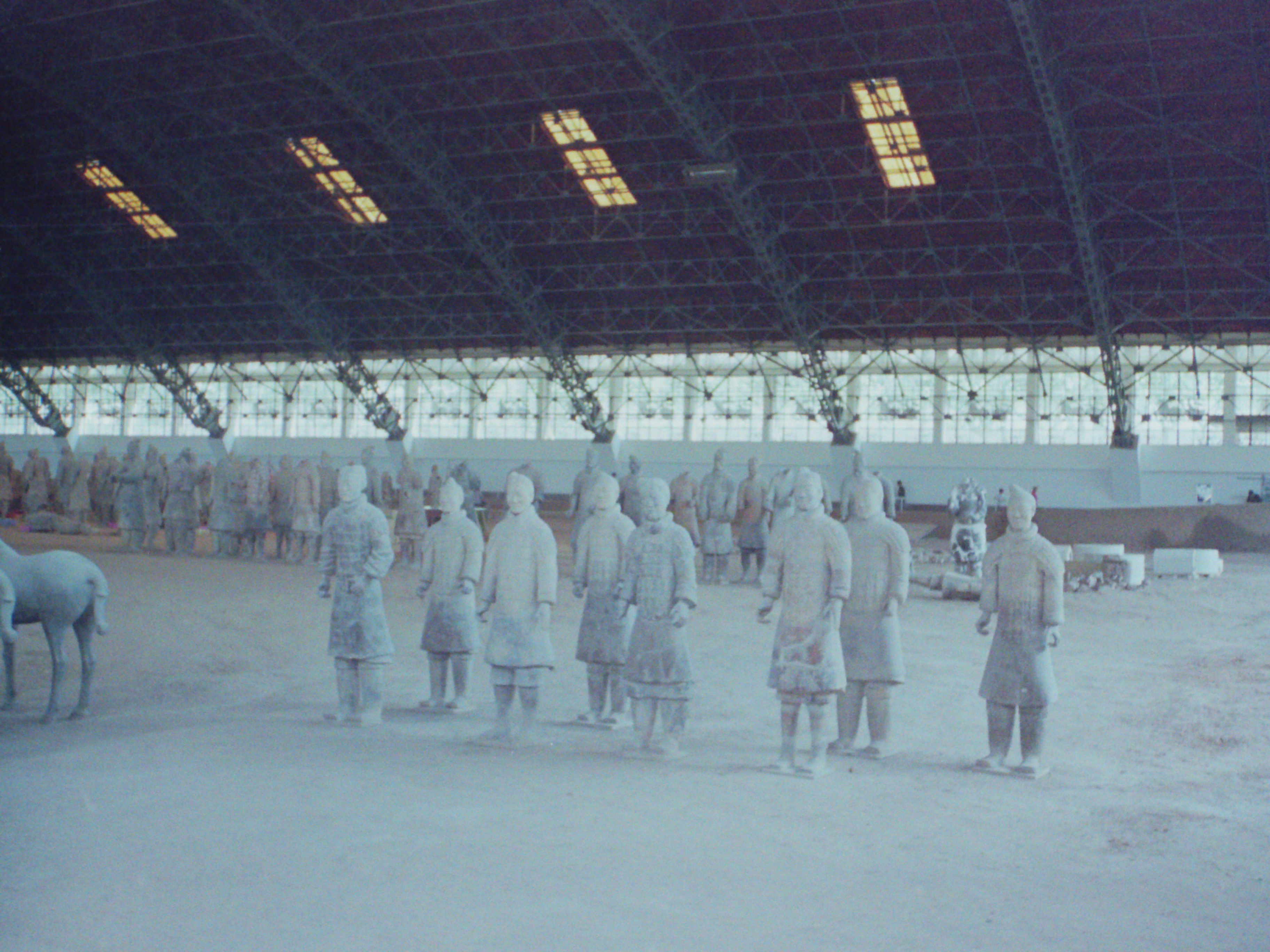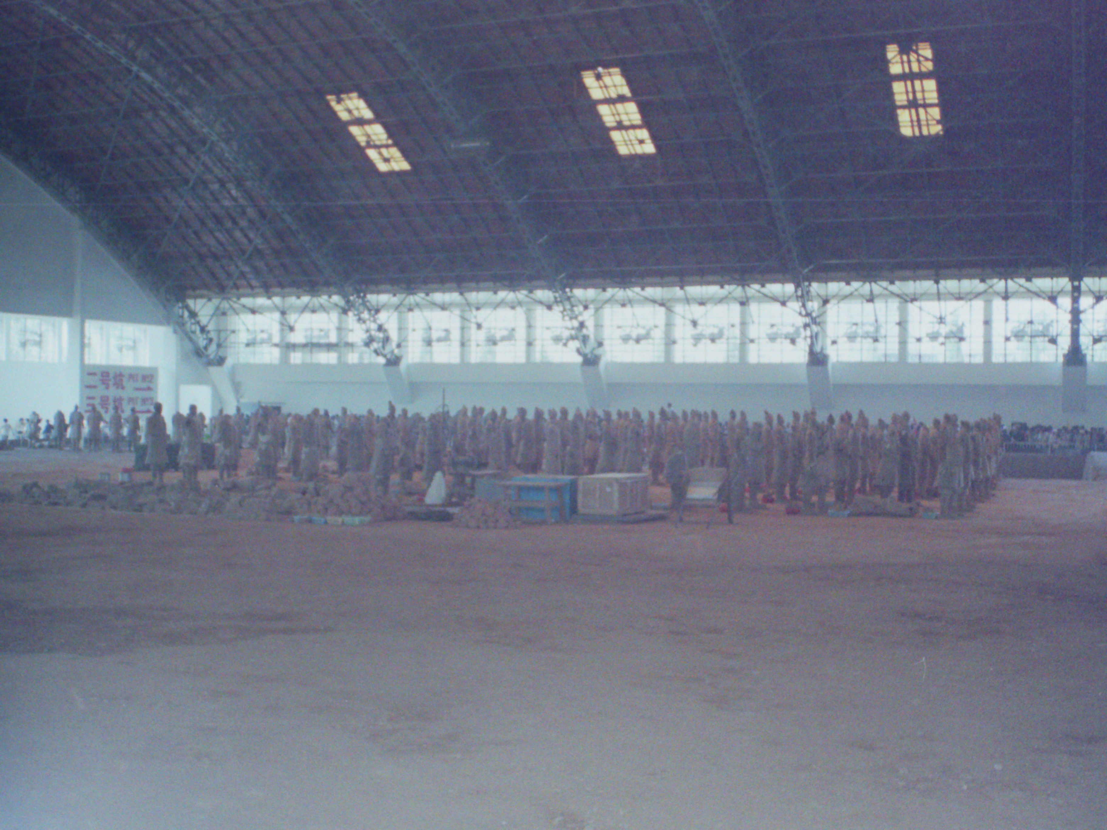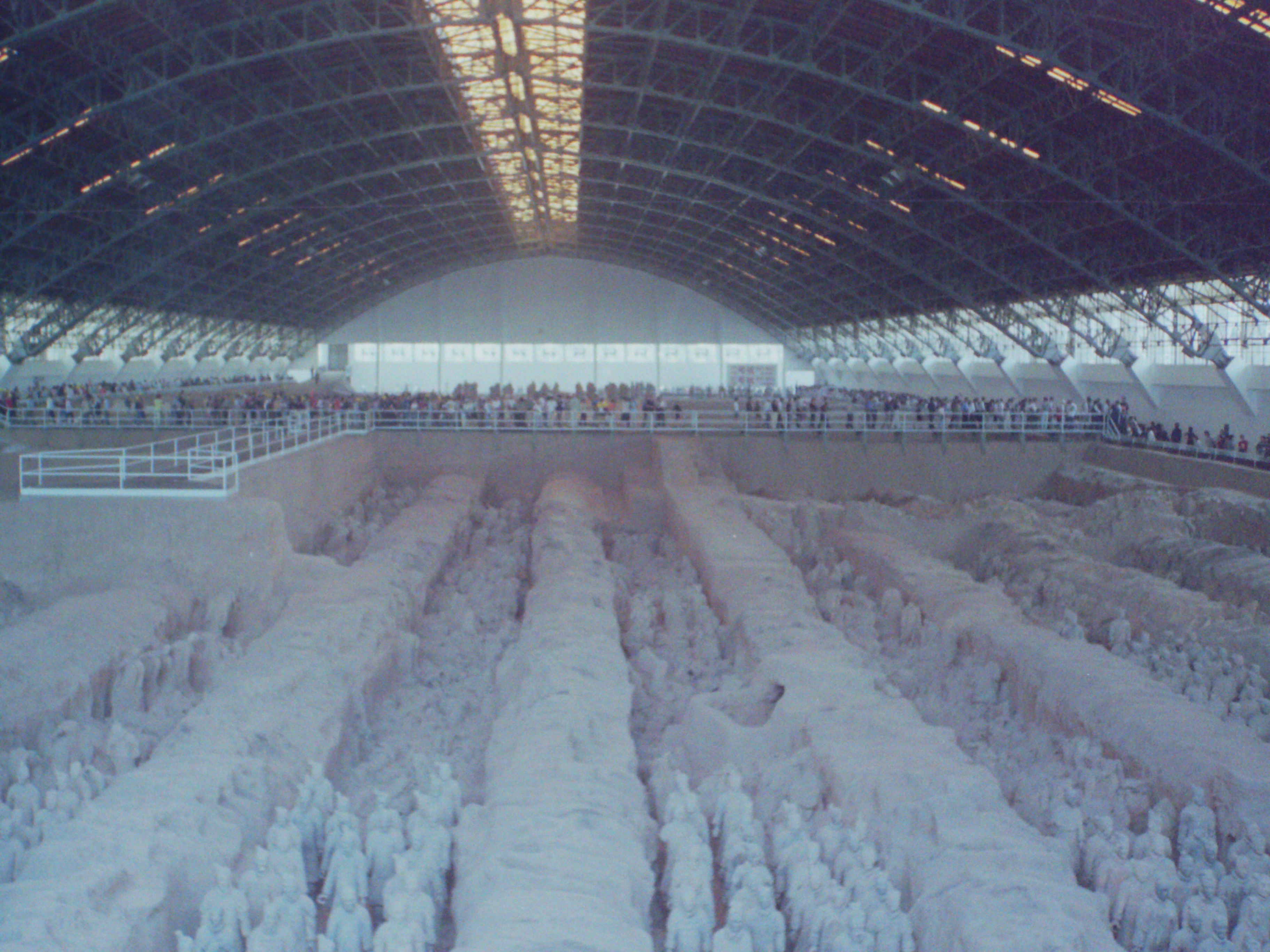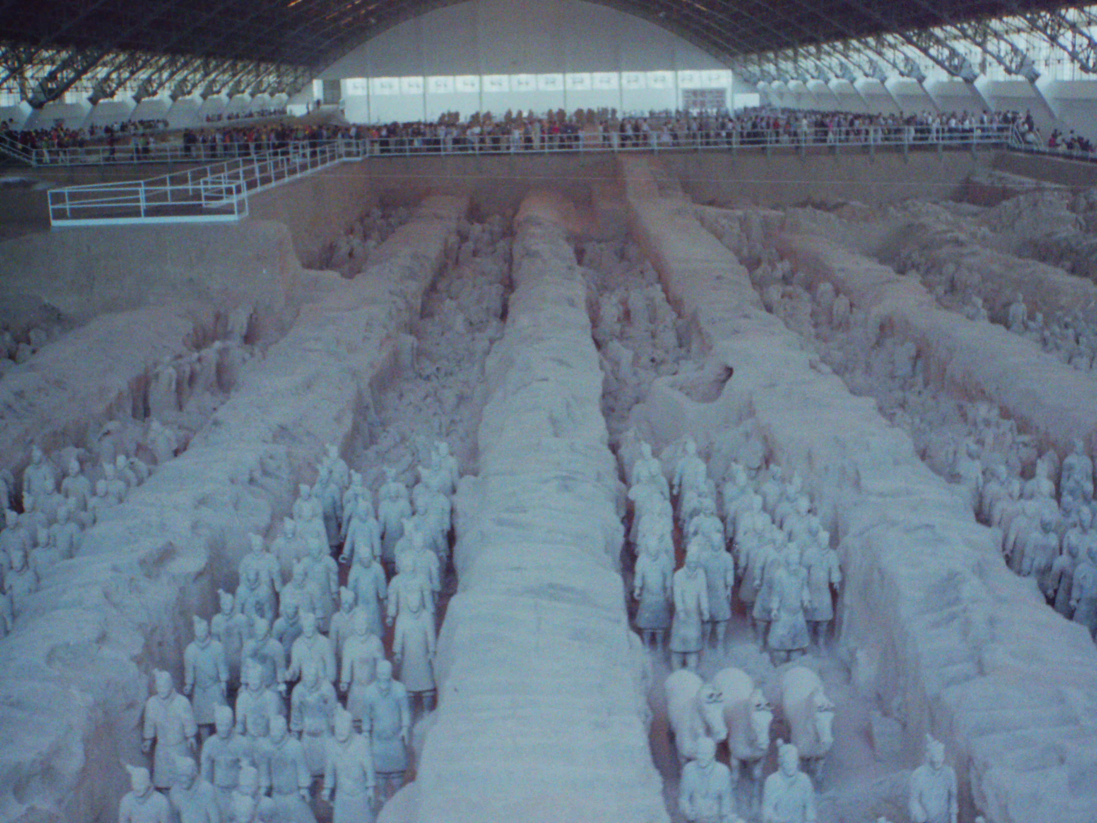 この兵馬俑も秦の始皇帝のためのもので、発掘された所に床の無い体育館のような建物を保存用に被せてあるがこんなに大規模とは思わなかった。