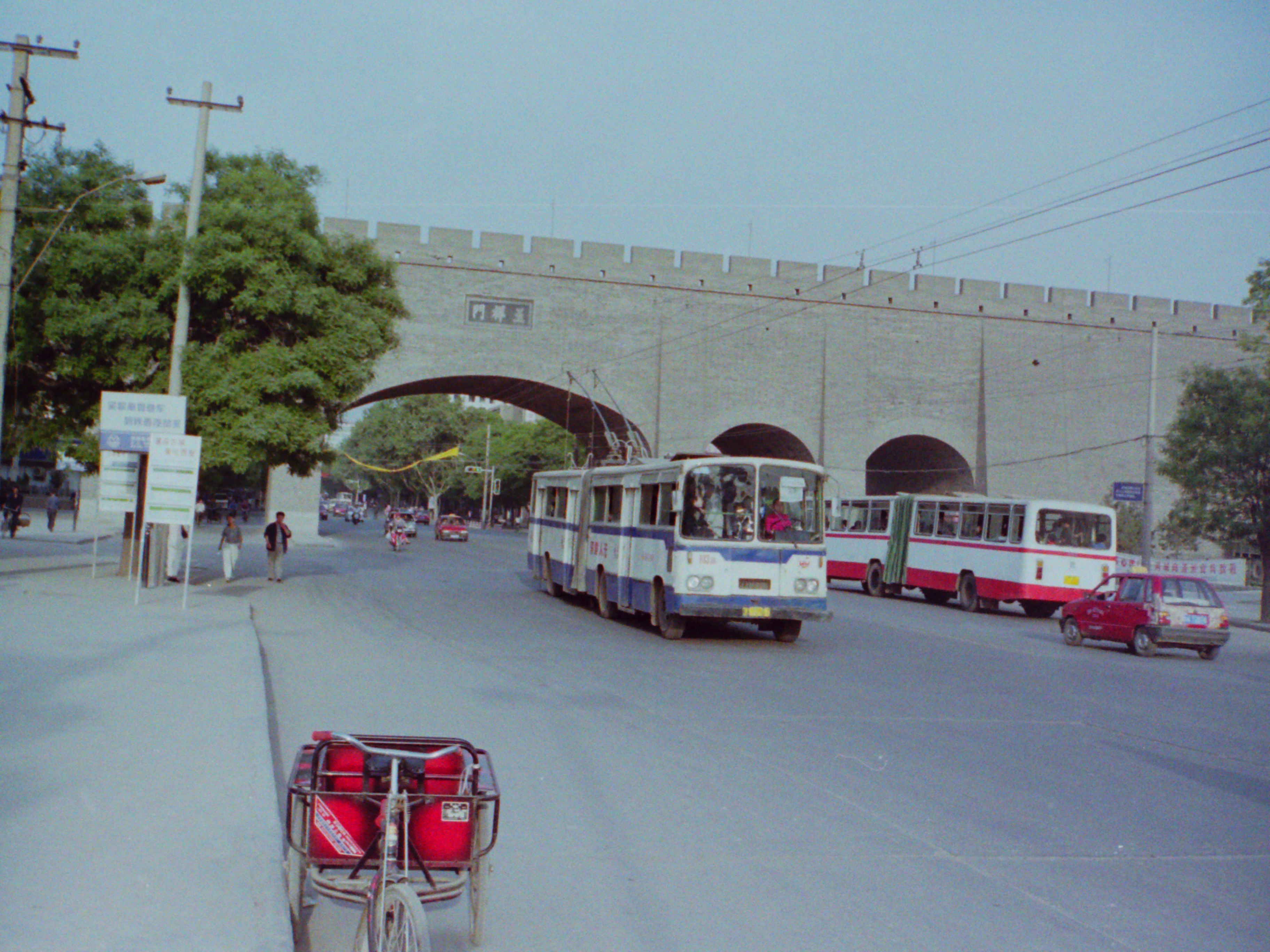 西安駅近くのバス停からマイクロバスの乗り合いバスに乗って兵馬俑に向かう。