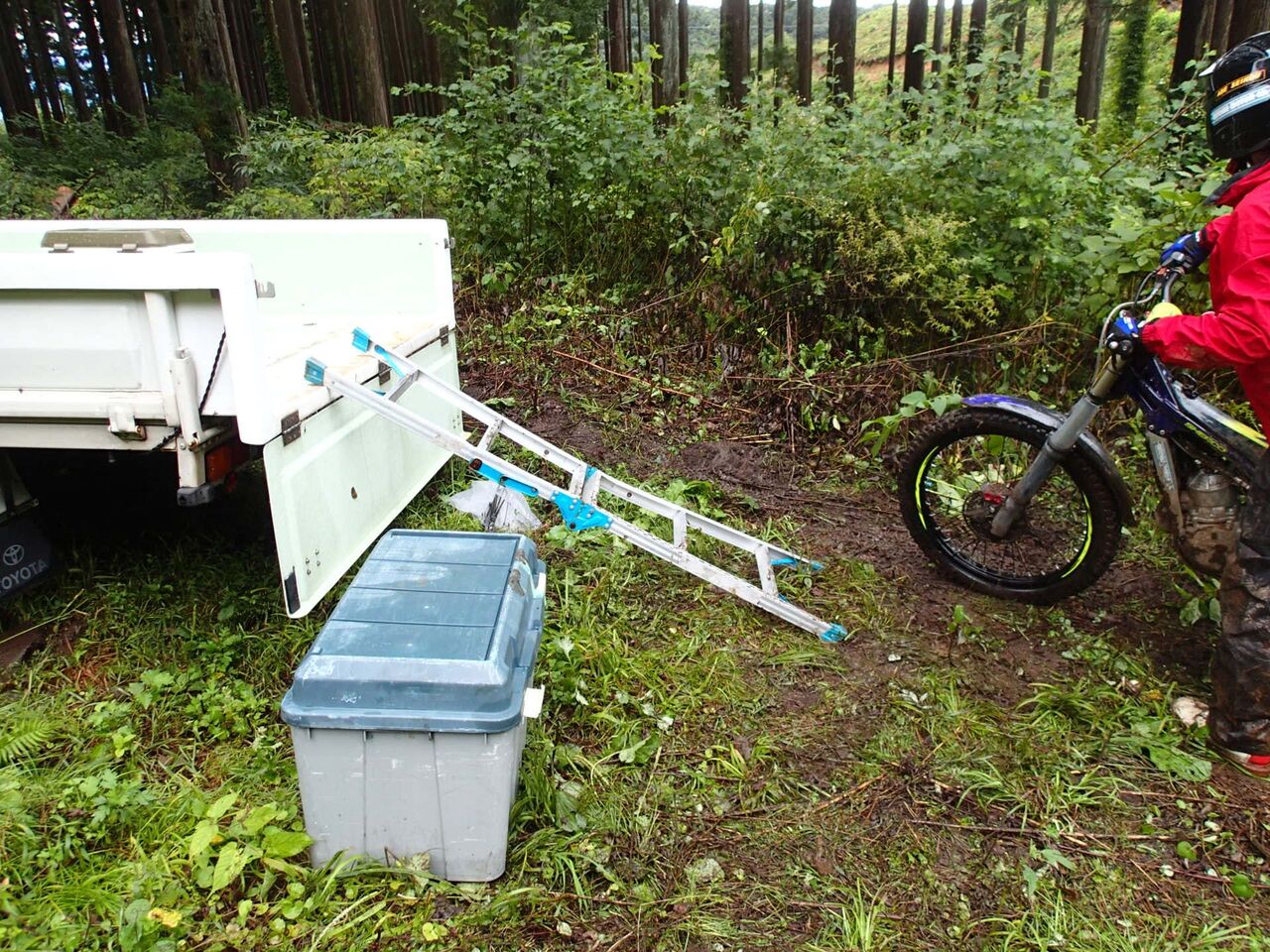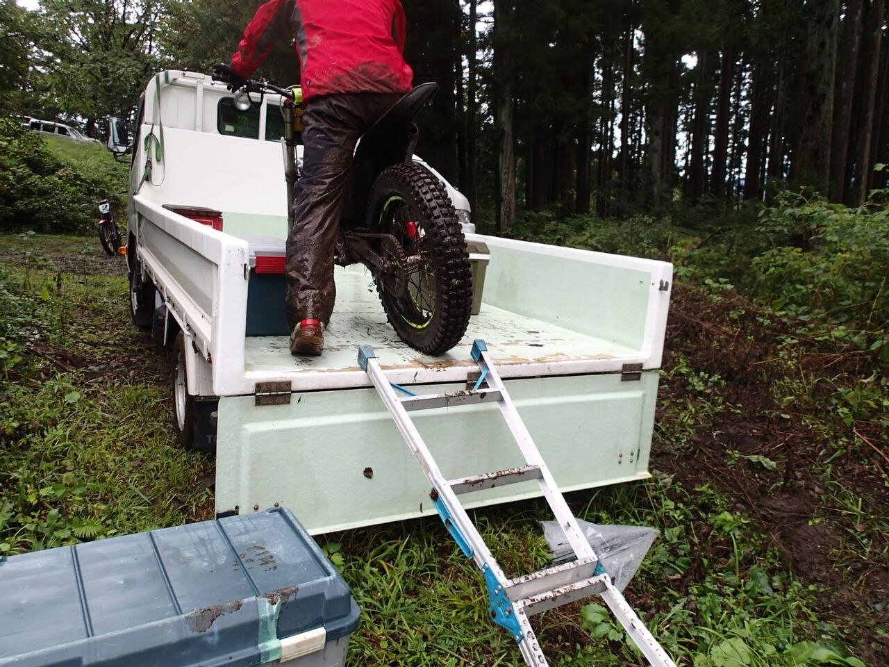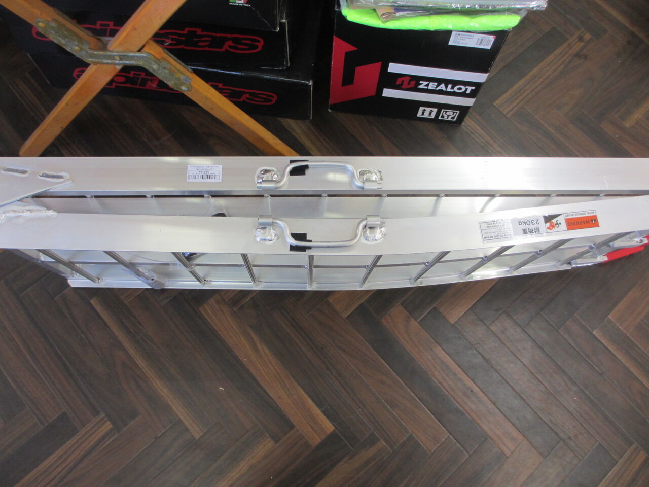 トランポには必需品のラダーの定番在庫を紹介しておきます。ベロ付きってのは、この車にかかる部分が爪(農機具用に多い)ではなく斜めの平板であること。車を傷めないしバックで出すときに後ろに押されて脱落したりしない仕様のことです。