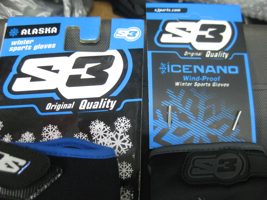 お馴染みS3社の冬用トライアルグローブがお洒落になりました。アラスカが3代 手の平素材が好評の「ナノフロント」に変わって