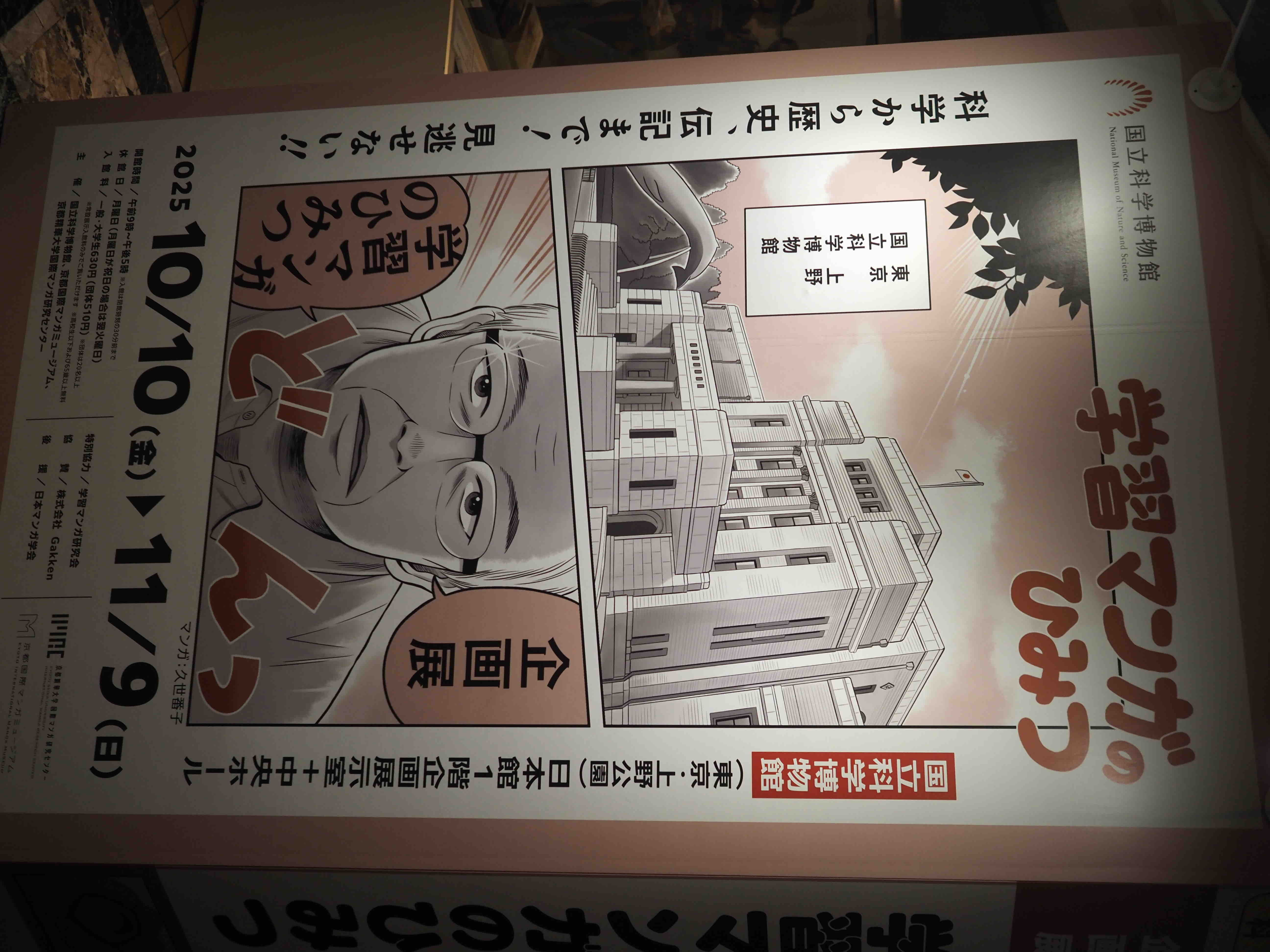 お休みの日に、ちょっと気になっていた展覧会、国立科学博物館の「学習マンガのひみつ」展に行ってきました。本展覧会は、戦中、戦後の学習マンガのはじまりから、「大人向け学習マンガ」や人気作家が手がけたベストセラーの生まれた70・80年代、そして海外出版社との共同制作によるグローバル化が進んだ2000年代と、学習マンガのこれまでの歴史をたどります。