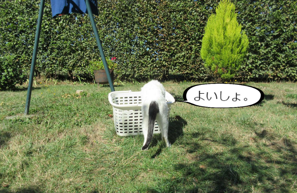 わざと阻ませたつもりでしたが、よけいに「やる気スイッチ」を推してしまったらしい。(猫を侮った私の負け。毛がつくし出て~。)