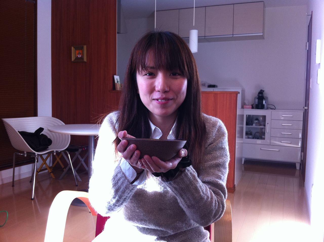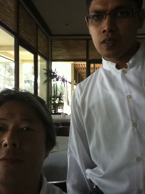 一人食事ををしながらiPhoneで写真を撮っていると興味津々にウエーターが話しかけてきた。