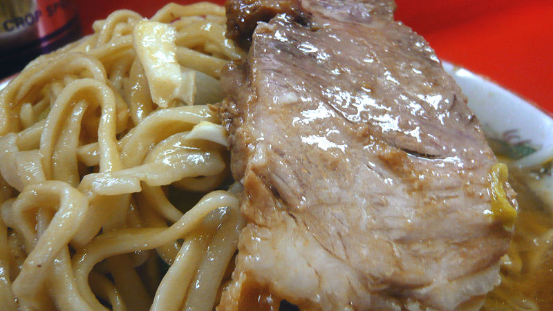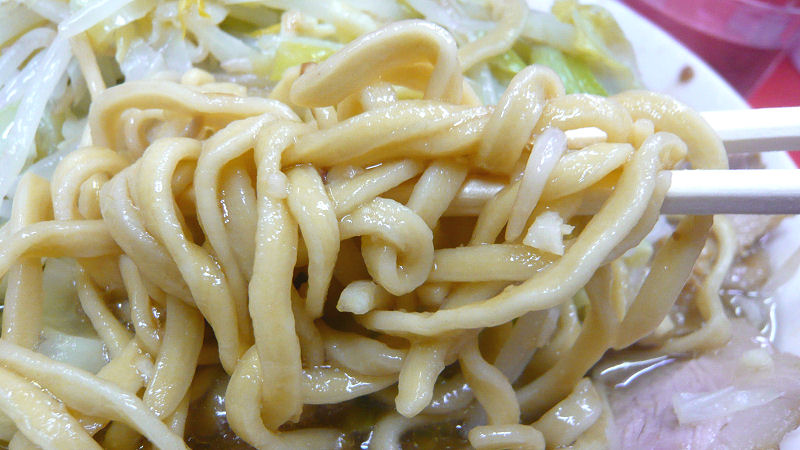 同じロットで頼んだ5人のうち、筆者以外の4人が「カタめ」指定。最後に出された筆者の麺は、ちょうど良い食感で三田特有の「柔らかくて美味しい麺」の本領発揮。