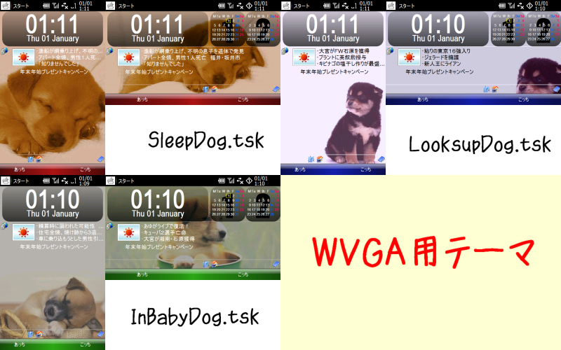 去年UPしようと思ってたWVGA用テーマをオトシダマー(* ゚∀゚)=◯)`Д゚)・;'チョッ・・・