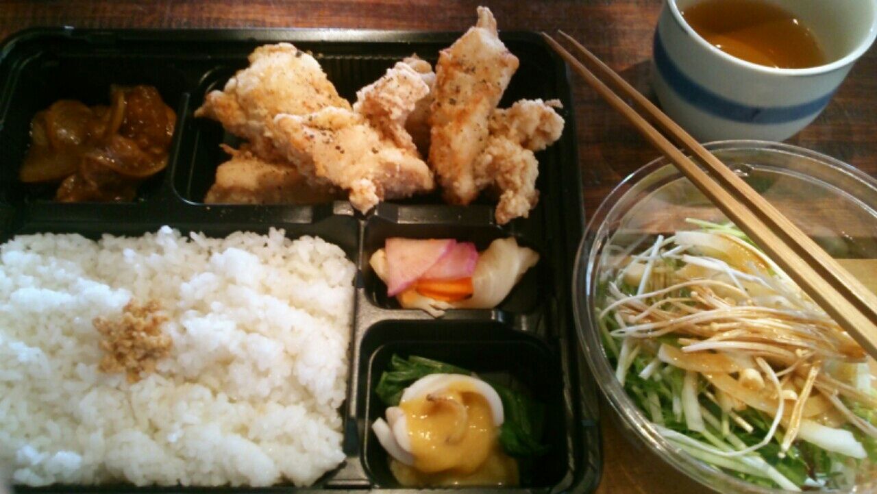 塩鶏から揚げ弁当(黒胡椒)、サラダ 650円 カロリー記載無し