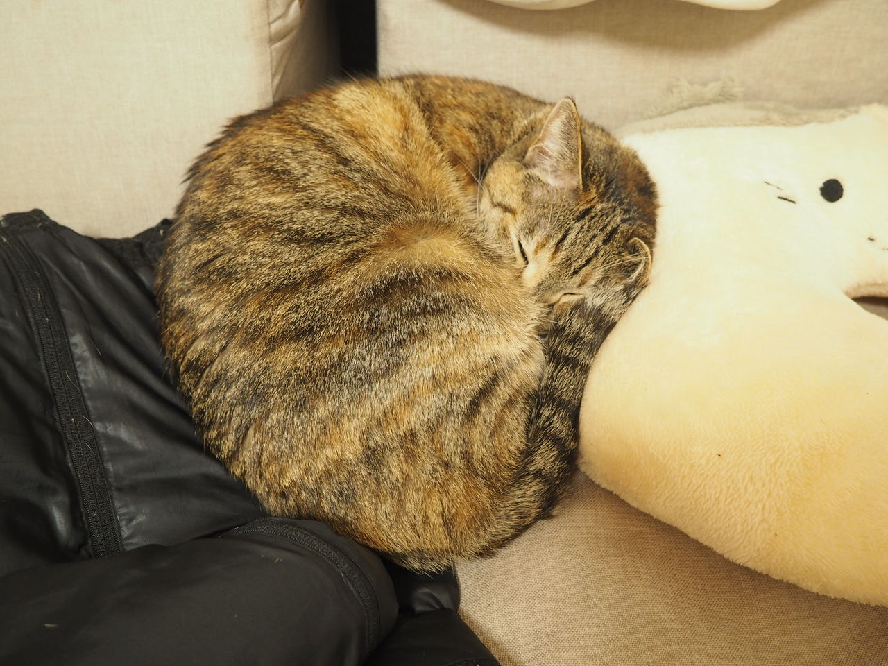食事が終わるとお膝を下りて一人でグッと丸まってネンネしてくれました。