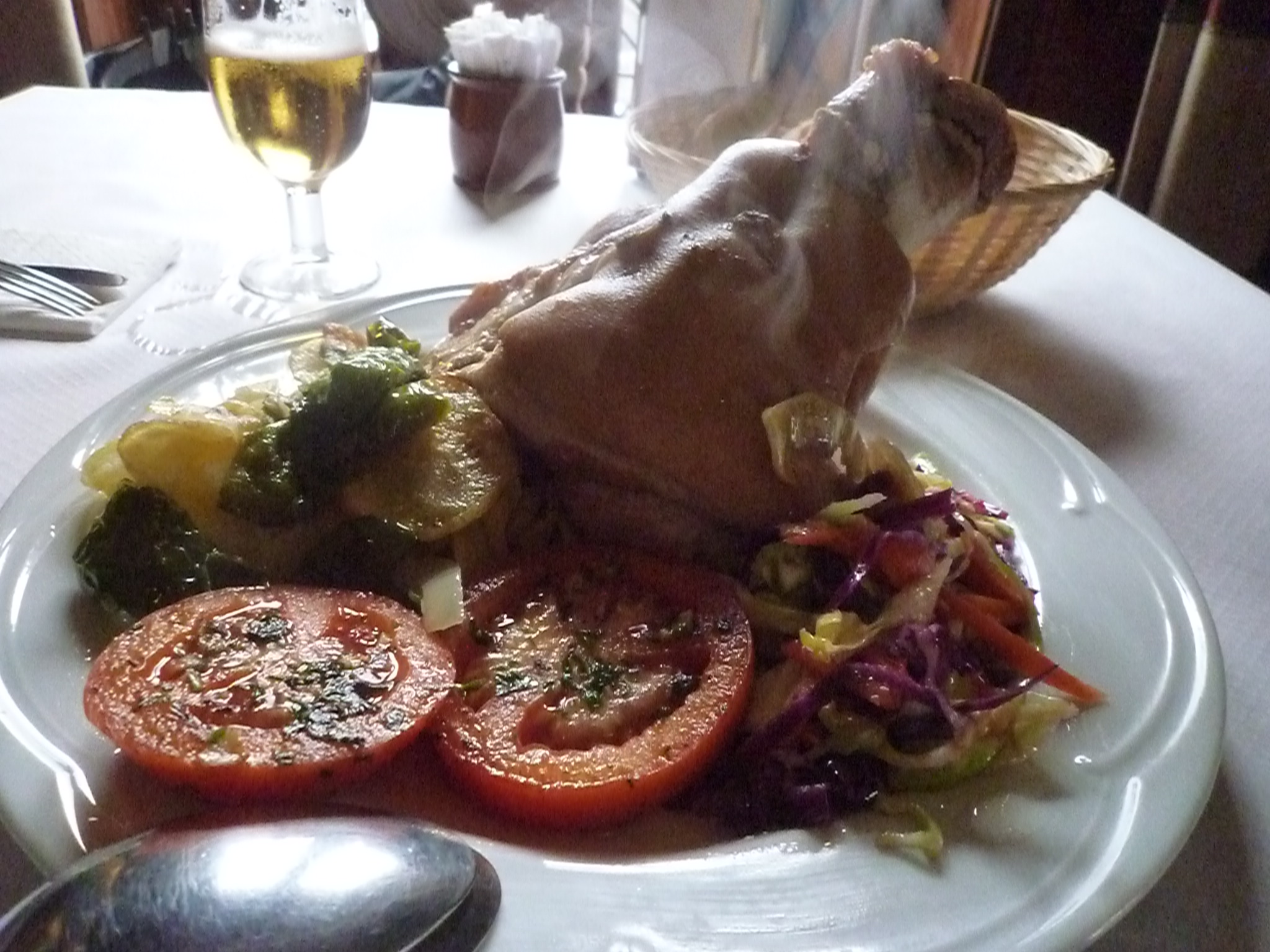 昨日生ハムの生産高がスペイン第一位の街トレベレスにいってきました。アルプハーラ地方そのものが生産地として有名なのですが、この街には日本人の業者も多く買い付けにやってきています。フェレイローラ村からはほんの15キロほど離れているだけなので、隠れた名店レストラン「フラグア」に食べに行っています。ここの名物のひとつに豚の肘の関節をじっくり煮込みトロトロにした一品があります。写真で見ての通り脂ギトギト、体には悪そうだし量が多い。このところ体重が極端に増えているし、一瞬逡巡しましたがやはりコディジョを注文、これを最後にダイエットを誓い、完食、夜には胸焼けのため起きあがり、梅肉エキスを処方しました。