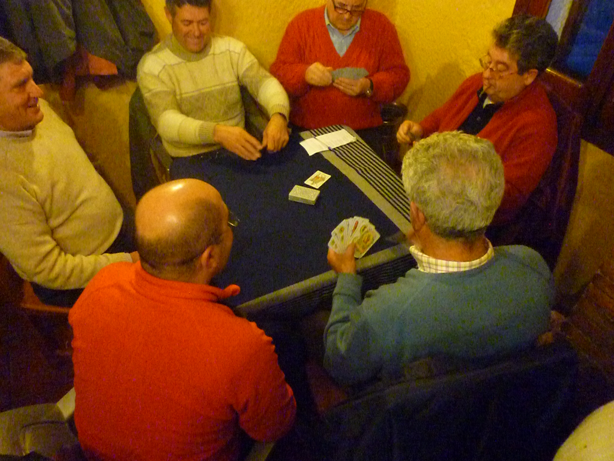 バルは飲み屋ですから、ほとんどのお客さんはビールかワインでタパを食べながら雑談になるのですが、田舎ではよくカルタやドミノを楽しんでいます。ほんの小額の掛金でわいわいがやがや、これがとても絵になります。それこそゴッホはカルタ遊びを絵にしていますが、なんとなく写真のような雰囲気が伝わります。熟年のなごむ場所がバルにはしっかりと息付いています。