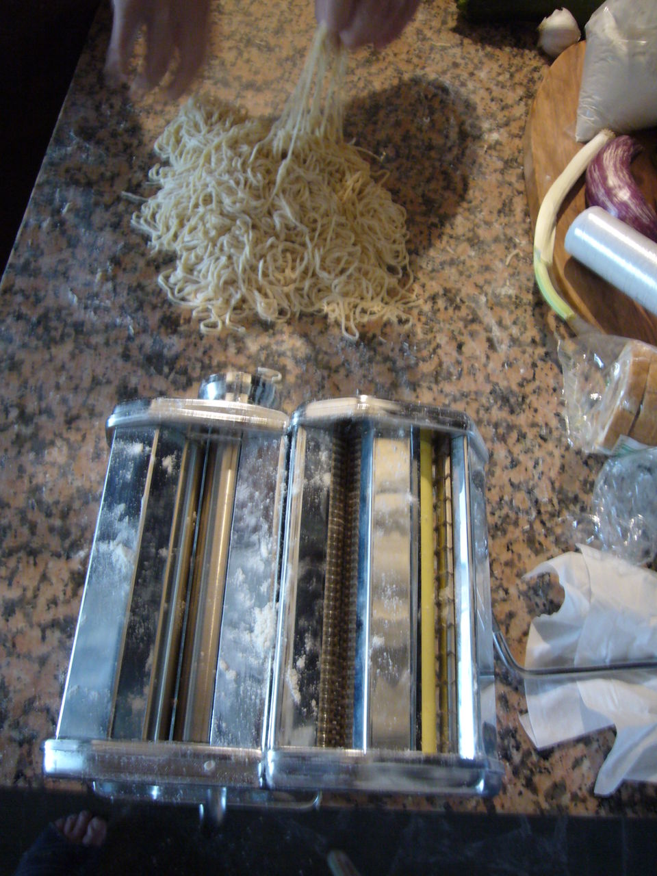 今回フェレイローラ村で初めて体験したことは、パスタマシーンを使って生パスタを作ったことです。昔、益子に通って陶器作りをしていましたが、土を練ることが大事で、菊練りはかなり腕を上げていました。生パスタとは基本的に粉100グラムに対して卵一個の割合で練る、もちろん水やオリーブ油を少しは加えるのですが、一般的には難しい作業、これが簡単にできるのは昔とった杵柄といったところ。かえって粉の選択が大変なのですが、パン作り用の半インテグラルな粉をペンション「sierra y mar」のインガーから頂き、まあ「これは旨い!」といえるパスタができたのです。茹で上げ時間は3分、また作りたいのですが、館山にはパスタマシーンが無いのが残念です。