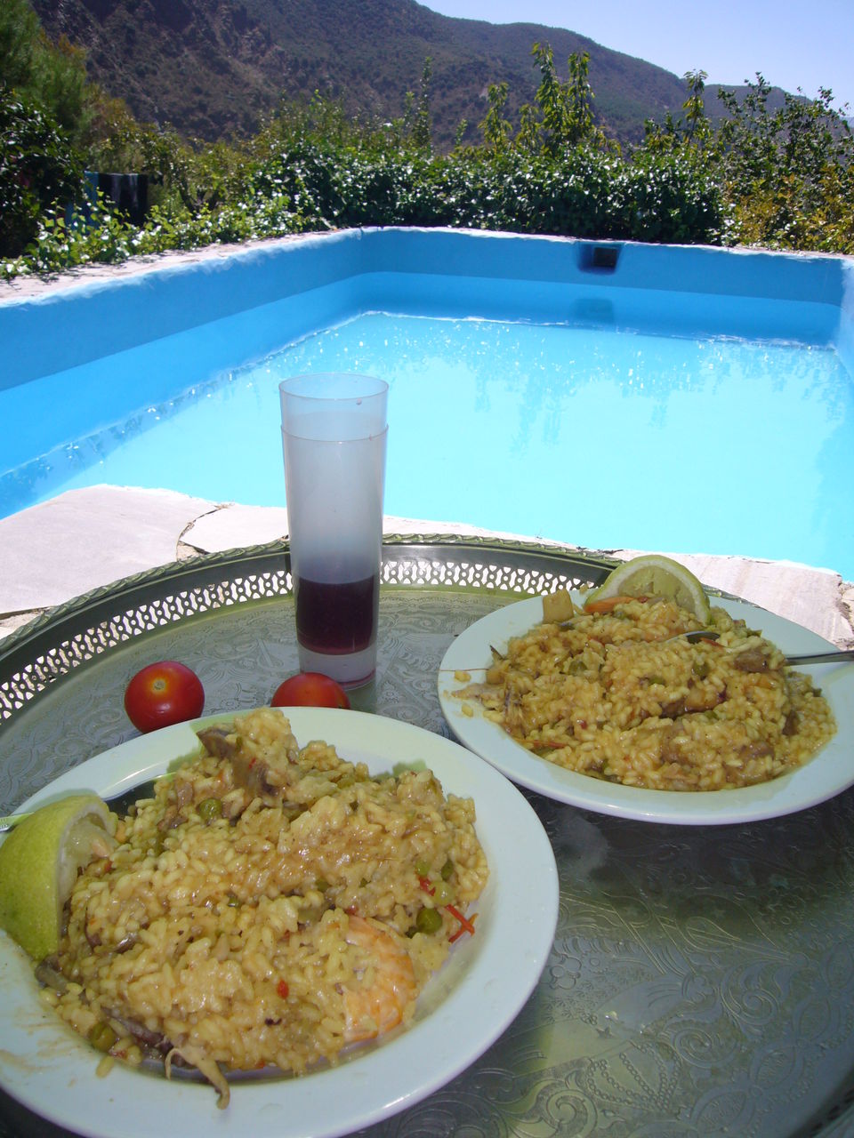 Click:それにしても懐かしい写真がみつかりましたので掲載させていただきます。祭りの最後の日はパエージャ、いただいたひと盛りをプールサイドで食べながら、なんていうバラ色の日もあったのですよね、その落差のある生活が私の生き方のようです。