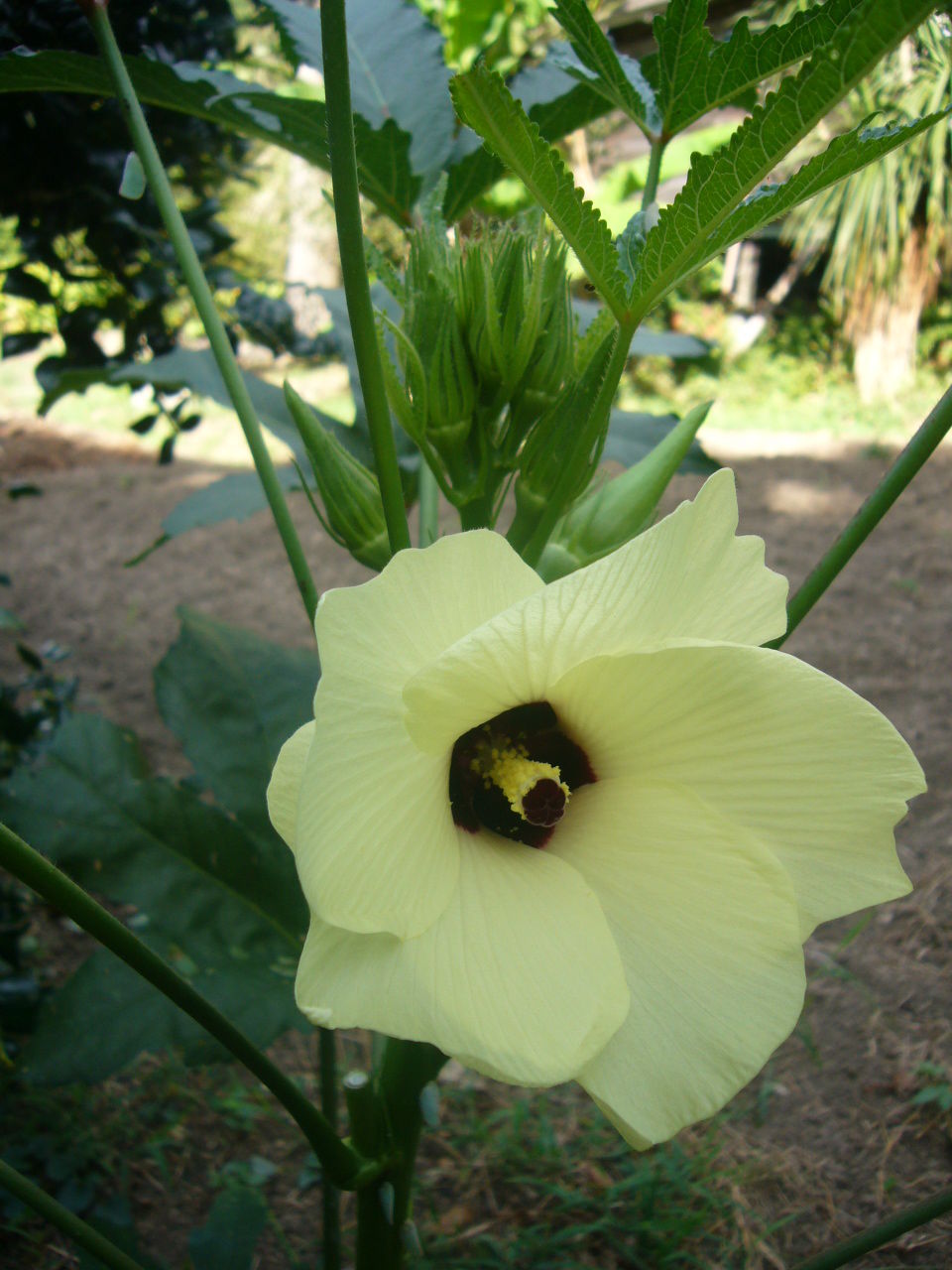 まあ、オクラのことなのですが、原語はアフリカの言葉、イギリス人はレディスフィンガーとも呼びます。スペインではあまり食べられていませんが、モロッコの市場では普通に売られています。やはりアフリカ産なのですね、発芽も地温がかなり高くならないとしませんし、乾燥にもかなり強い、今が盛りと毎日収穫しています。大きくなると固くて食べられませんからね、的確に収穫しなければなりません。オクラの種類は沢山あり、紫がかったものや5角形ではなくそれこそ淑女の指先のようにしなやかで丸いものもあります。ネバネバが体によさそうだし、納豆にモズクとともに混ぜ合わせて食べると本当に美味しい。花も綺麗ですよね、アオイ科に属していますが、納得の美しさです、盛夏に欠かせない野菜のようです。