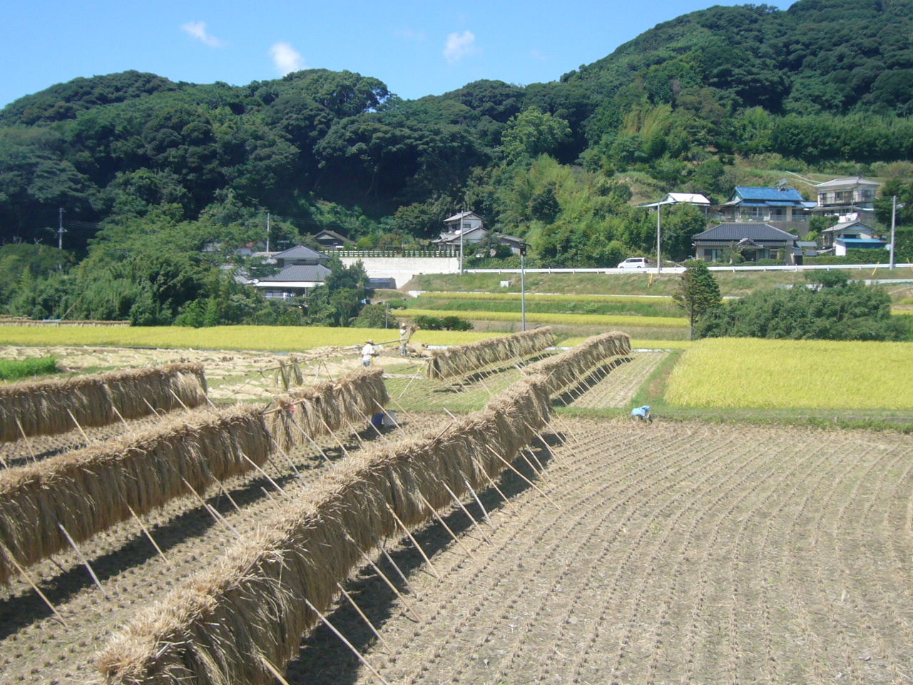 館山はどこも先を争うように稲刈りが始まりました。ほとんどが自家消費ということで味にこだわり、天日干しをしています。今年は台風の被害もなかったし晴天続き、美味しいご飯が食べられることでしょう。