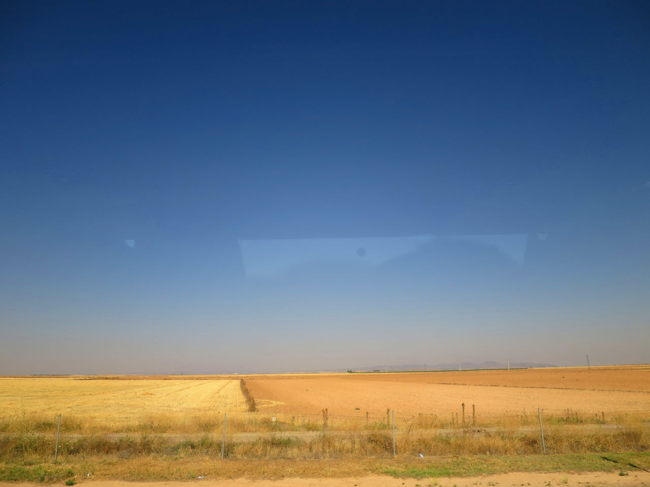 ほんの2週間の旅でしたが、密度の濃い体験をしてきました、ということでいくつかをご紹介してゆきます。まずはこの蒼い空と地平線、見渡す限りの麦畑です。内陸部のラマンチャ地方ですが、それこそドンキホーテが闊歩していた大地です。麦はほとんど刈り取られ、光を浴びて黄金色に輝いていました。スペインが経済的に疲弊しているといわれながら、実はこんな豊かな農業国でもあるのです。
