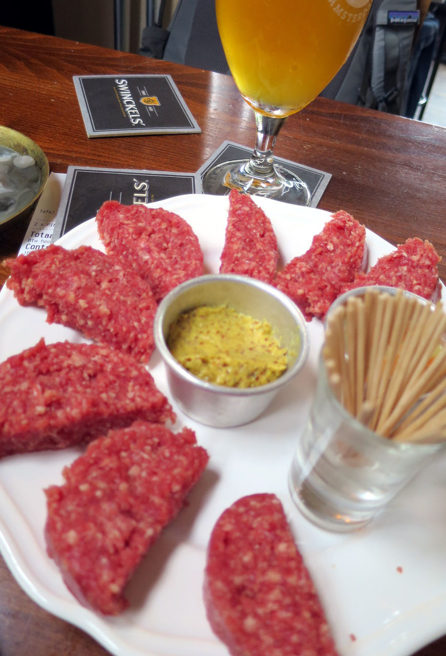 アムステルダムで見つけた運河沿いのカフェバルでナチュラルビアを飲んだのですが、そのつまみに頼んだのが生の牛肉でした。味はソーセージ仕立て、胡椒やナツメッグのような香辛料がきいていました。さすがオランダ、スペインには無い料理です。やはり北大西洋は湿潤な気候、それに水辺が多く牧草がどこでも生えていました。土地には土地の名品があるようです。