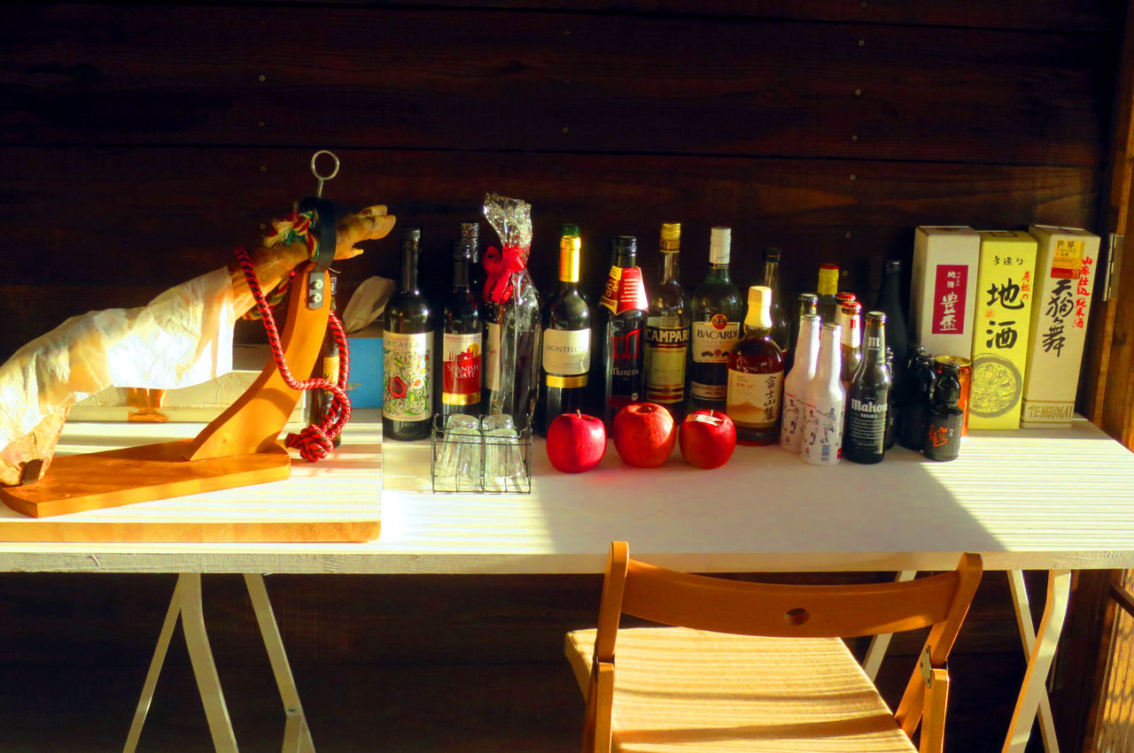 Click:気がつけば秘密基地にも、またまた飲み屋的空間が誕生していました。さすがにスタジオのように意図して作っている訳ではないので、まあ、酒瓶が置いてあるだけなのですが、これだけでも心和むので不思議ですね。駄菓子といい、お酒といい、体にあまり良くないようですが、精神的には強い味方なのです。