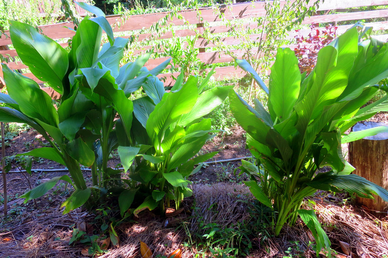 Click:秘密基地の畑は何もなかったのですが、防護柵を作りサツマイモをはじめ夏野菜を栽培、それに数十本の果樹を植えました。そのとき、写真のウコンとヤーコンを移植してみましたが、どちらも元気に育っています。今年の気候はまさに東南アジア、ピッタリの植生になったようです。タイなどでは生のウコンをスパイスとして料理に使っています、いつか試みようと思いながら今だ実践していません、そろそろですかね?