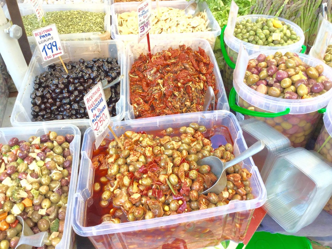 Click:オリーブ漬けの写真ですが、日本で食べているものとかなり様子が違います。香辛料とか混ぜる野菜などで味が変わります。たぶん、日本でもオリーブの木の栽培が流行っているので、いつかはこんなオリーブ漬けが食べられるかもしれません。お酒のおつまみには最高です。