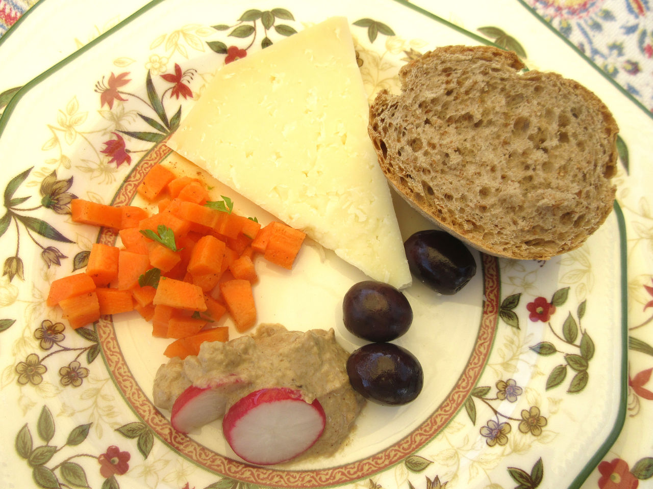 Click:仲良くしているドイツ人夫婦に招待されたときのアペリティーボ、まず、器が可愛いですよね、そしてチーズ、黒オリーブ<自家製>、パテとニンジンのバター炒め、それに黒パン、これだけでドイツ人の雰囲気がわかります。最初はカバ、そして赤ワインと続きました。日除けのあるテラスでの会話ははずみましたね。