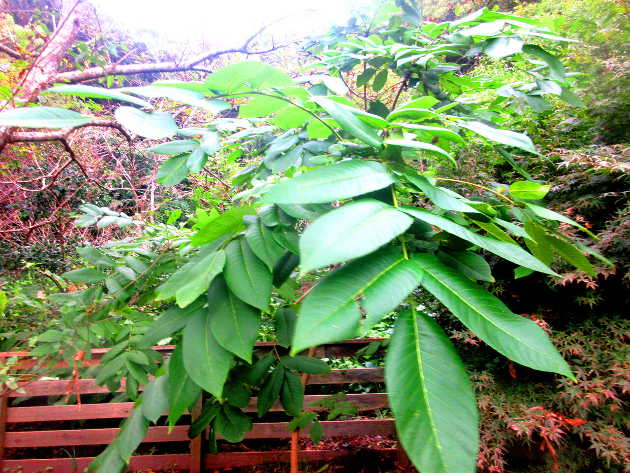 Click:今年、大きく成長したのが胡桃の木です。葉の大きさも付き方も他の木々とはかなり違います。スペインの畑には大きな胡桃が何本か有り、沢山の実を毎年付けていましたが、アルプハーラ地方一帯、ウイルス性の病気が蔓延し、どこもかしこも枯れてしまいました。怖いですね、しかし館山にはまだ病気は発生していないようです、これからも元気で育ってほしいですね。