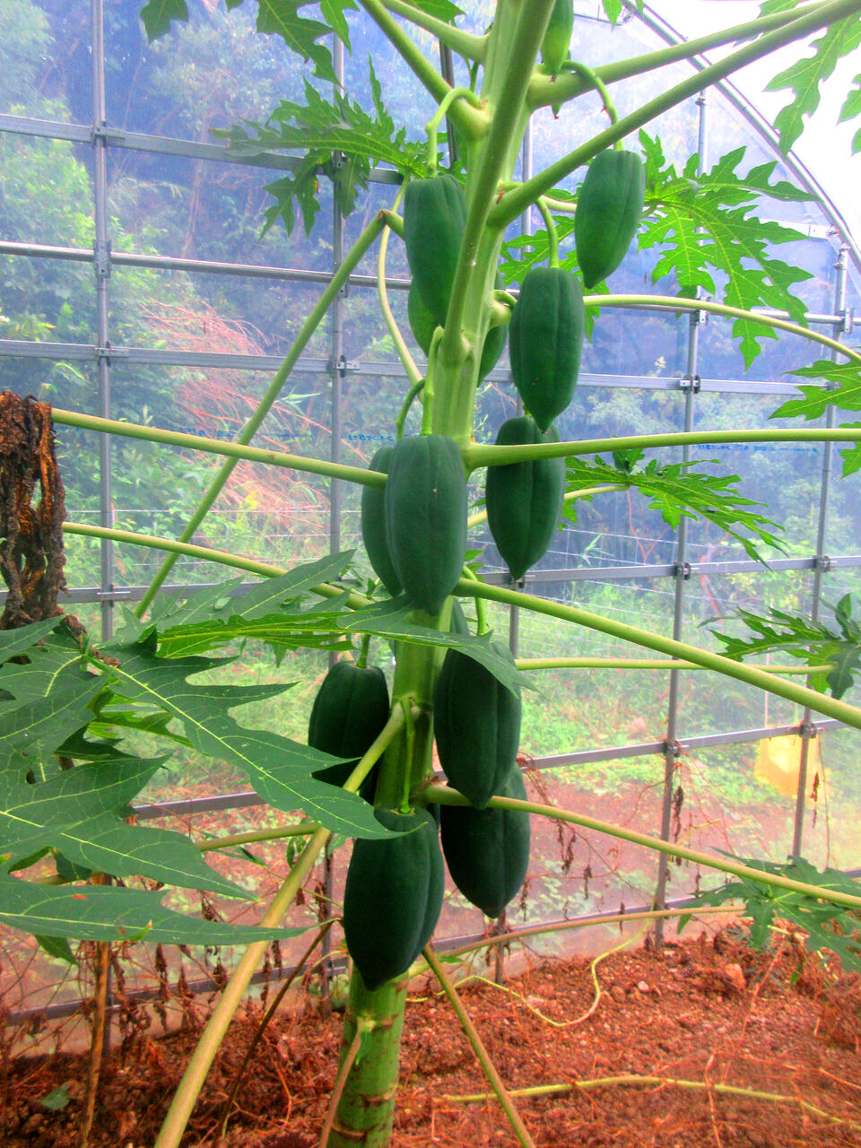 Click:スタッフが青パパイアを千切りにしてサラダ仕立てで料理したら、大変美味しかったとのこと、ま、でも初めてのパパイアの育苗、まずはどのように熟れて行くか様子を見ることにしています。私はバンコックでよくサラダを食べていたのでその美味しさは知るところ、熟れたパパイアもマニラ郊外に滞在していたとき、毎日のように食べていました。ま、そんなに甘くもないのですが、喉の渇きを潤します。とまあ、予期せぬ沢山の結実、その成長を楽しみにしています。