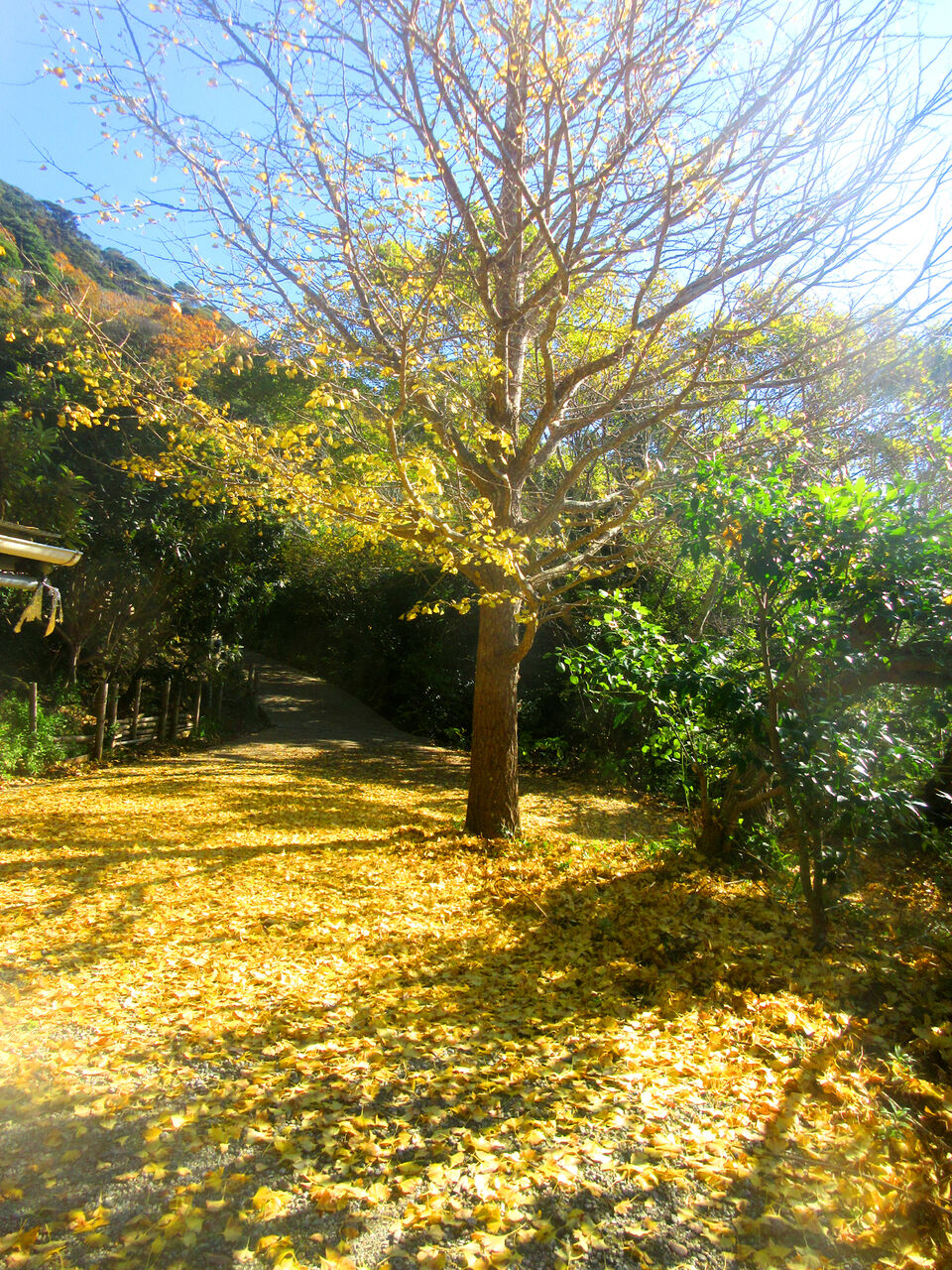 Click:とうとう黄色くなったイチョウの葉はほとんど無くなってしまいました、確実に秋から冬へ季節は移り変わりました。大地は真っ黄色、肥料になるので有り難いのですが、良く滑ります。しっかりと踏みしめながら歩かないと危険なのです、毎年訪れる初冬のイベントになっています。