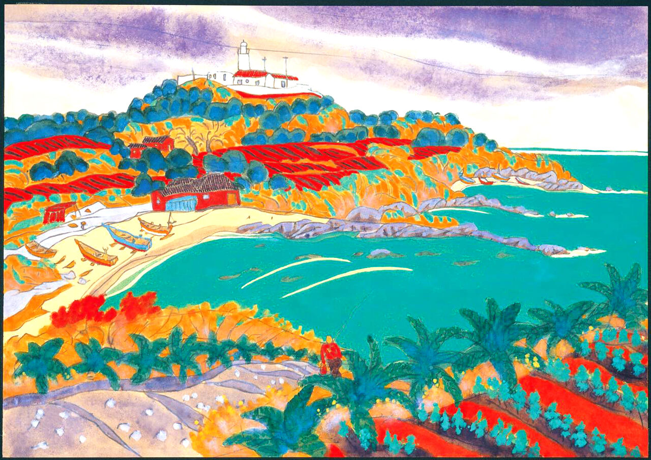Click:先日発売された館山産の赤白ワインsouthan graceのラベルに私の絵が使われていることはお話ししました。その景観についてご説明します。まず、南西の突端にある西崎灯台を描いたのが白ワインに、タイトルは<西崎ポイント>です。今はこのあたり水仙が花盛りです。ぜひ訪れてみてください。