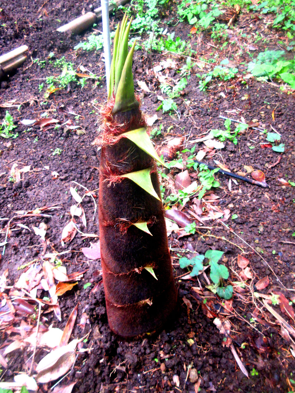 Click:ようやく待望の筍が顔を出しました。去年、取り過ぎたのか今年は少ないようです。ということで、今年は収穫せず、竹にするつもりです。せっかくスタッフに頼んで竹林を育てるべく整備したので、なんとか小さな竹林になるよう試みます。そして沢山筍が出てくるようになったら収穫します。思うようにいくのかな?