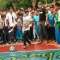 『嵐』!のタトゥーを入れ終えた黒Tシャツのデビッド・ベッカム