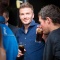 黒のパーカー、黒のデニム、緑のニット帽で彫り師MR.Kさんと2ショットのデビッド・ベッカム。
