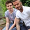 白Tシャツのデビッド・ベッカムとボーダーTシャツのブルックリン君
