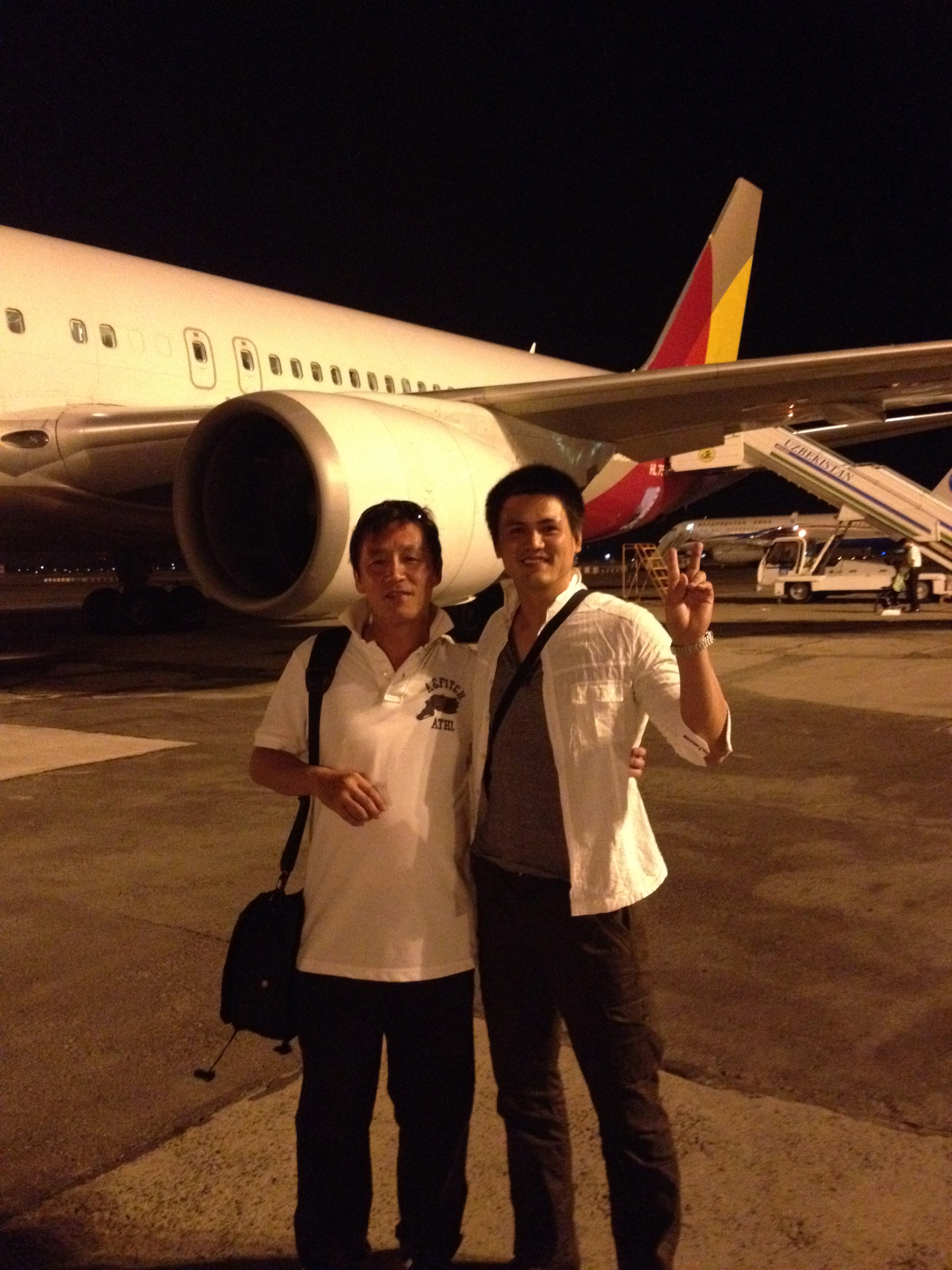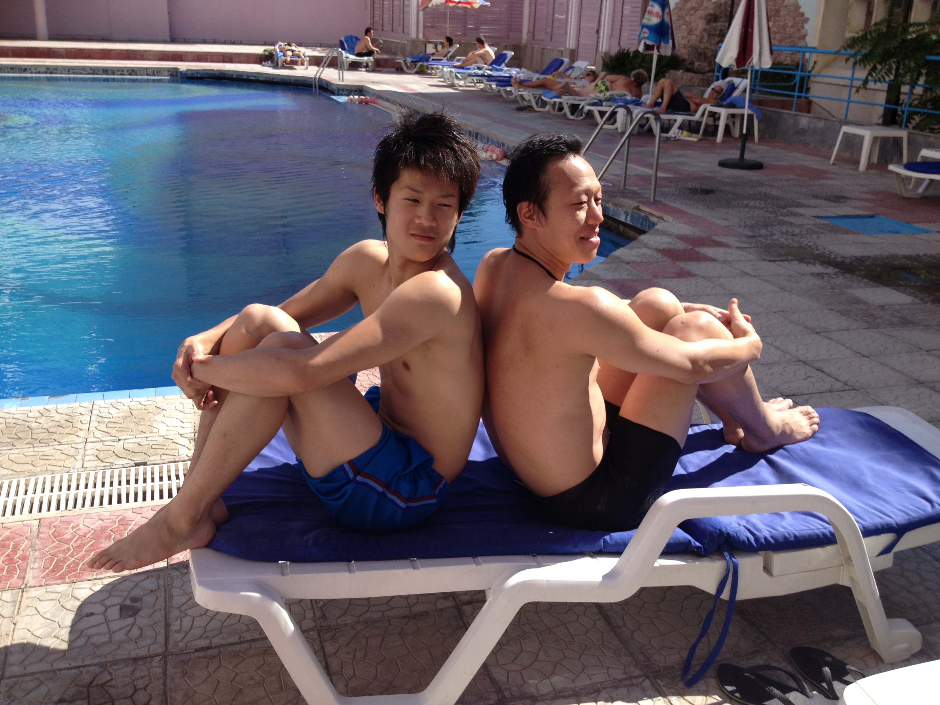 ホテルの駐車場では暑いのに香港チームが練習していました。