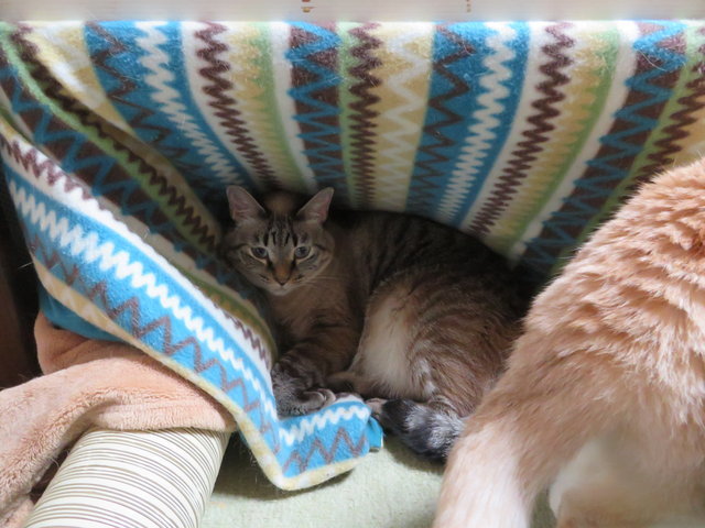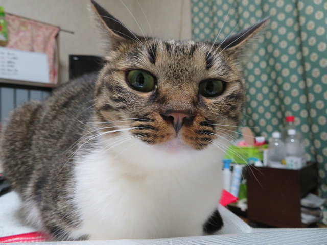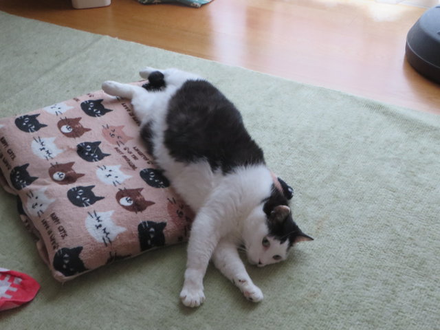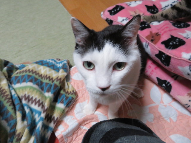 ゴロンと横になってたらコツミがお腹の上に、写真~と思ったら近すぎるコツミの後ろで、