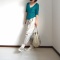 控えめなベージュ×さわやかなホワイトに紐のゴールドがキラリと効いた大人のスニーカー。