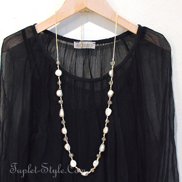 バロックパール風のネックレスも重ねて付けました。