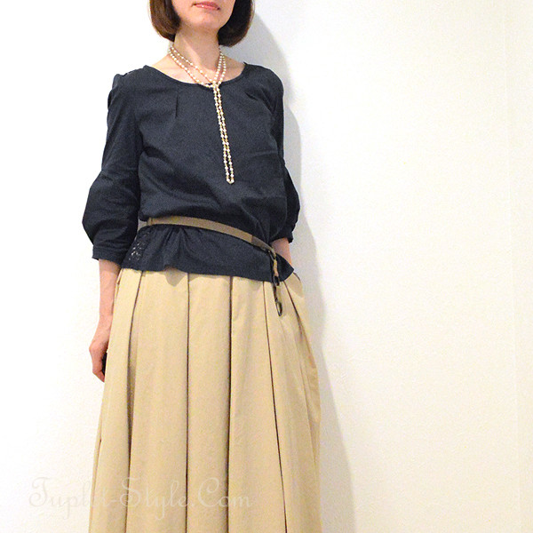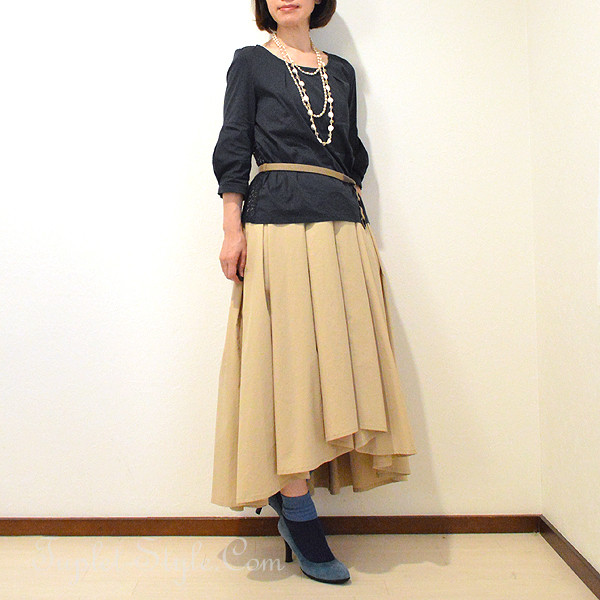 ロングネックレスを使ったコーディネート。
