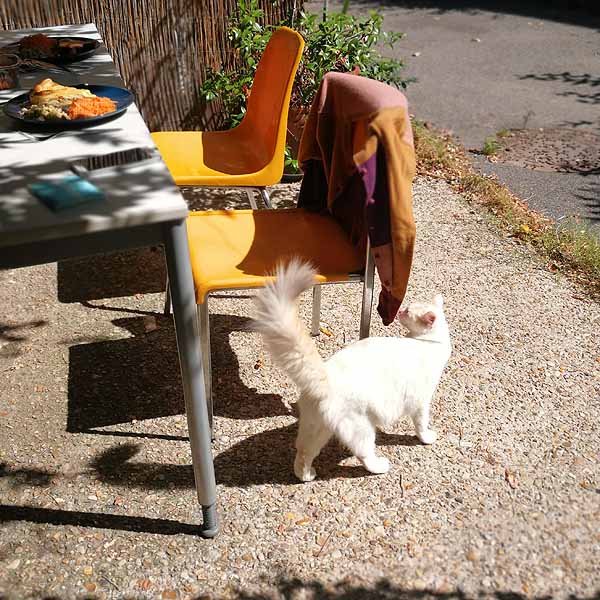 猫もランチを欲しがってウロウロ。