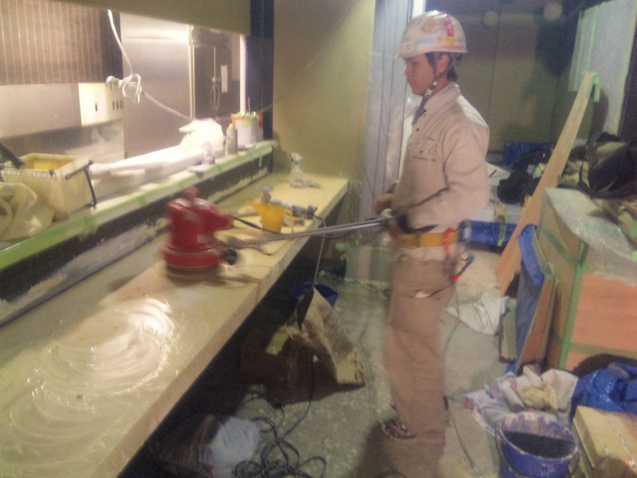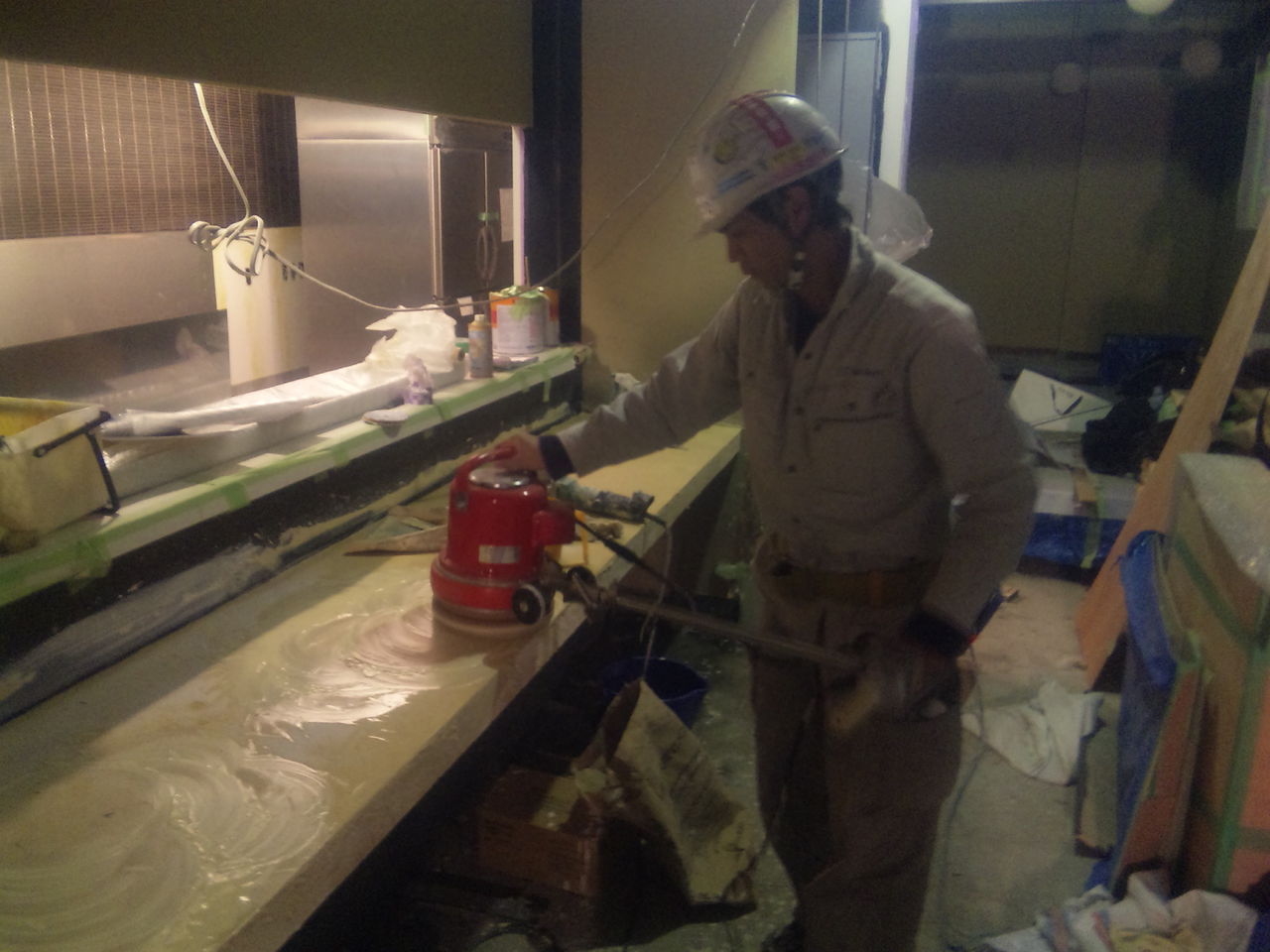 今回はテナントのカウンターで現場テラゾーを研磨する仕事を受けました。