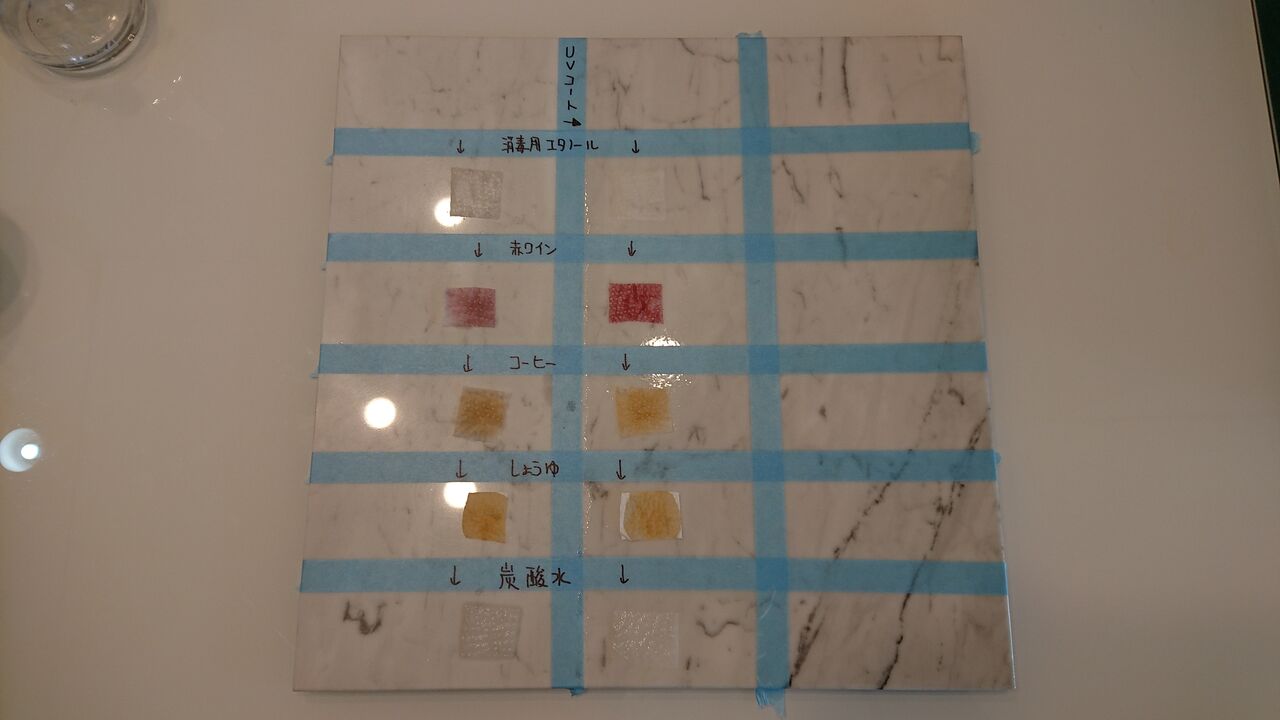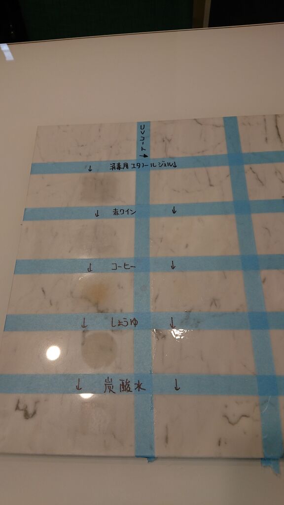 今までは、石の補修にUVパテで補修はしていましたが、これからは大理石のUVコーティング