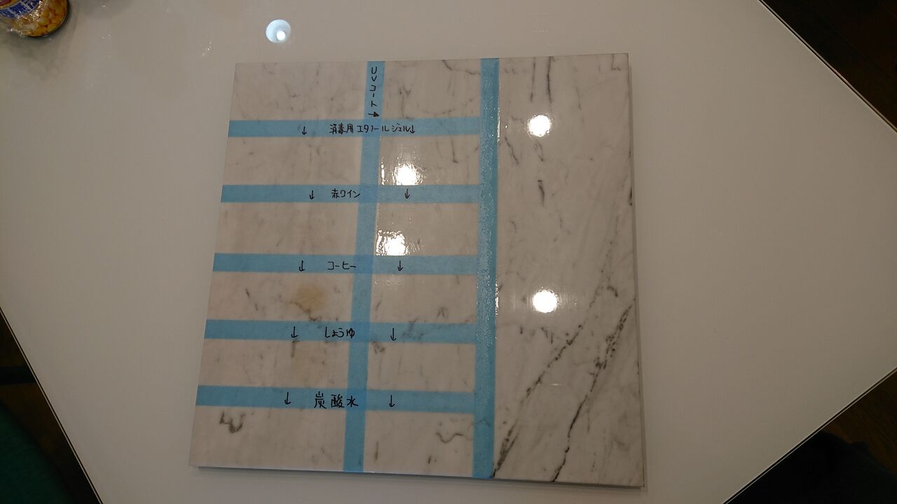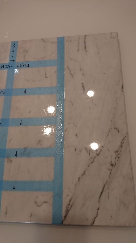 ①大理石鏡面仕上げのUVの密着が悪く剝がれやすかったのですが、今回UVプライマーを塗る事に