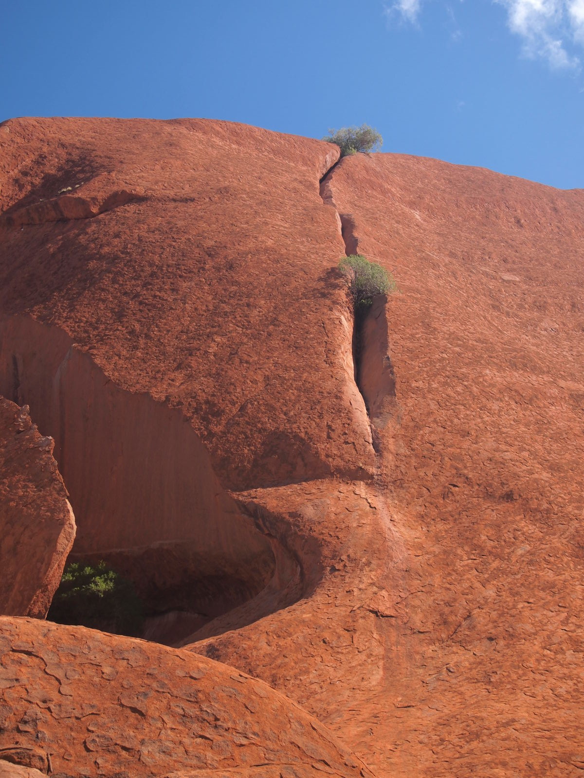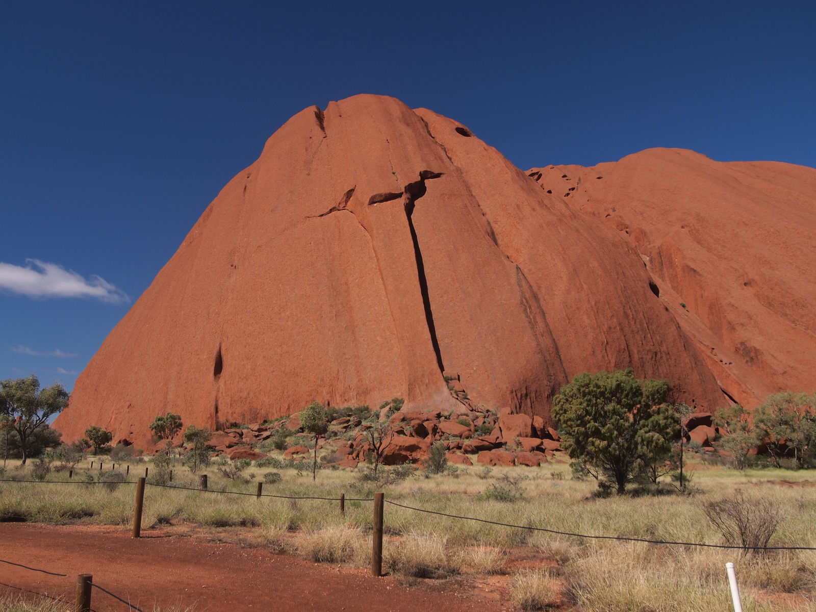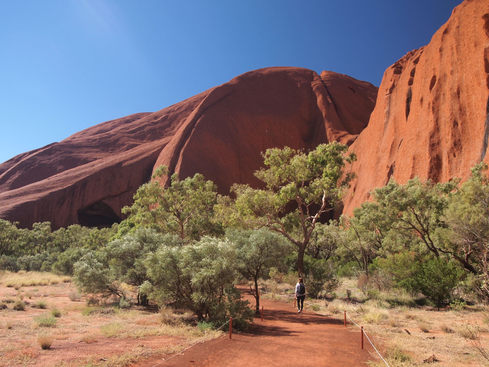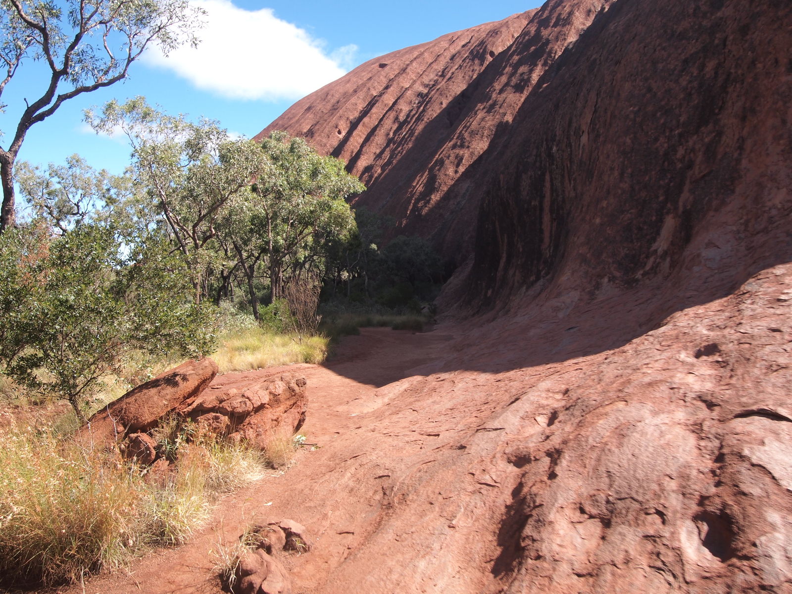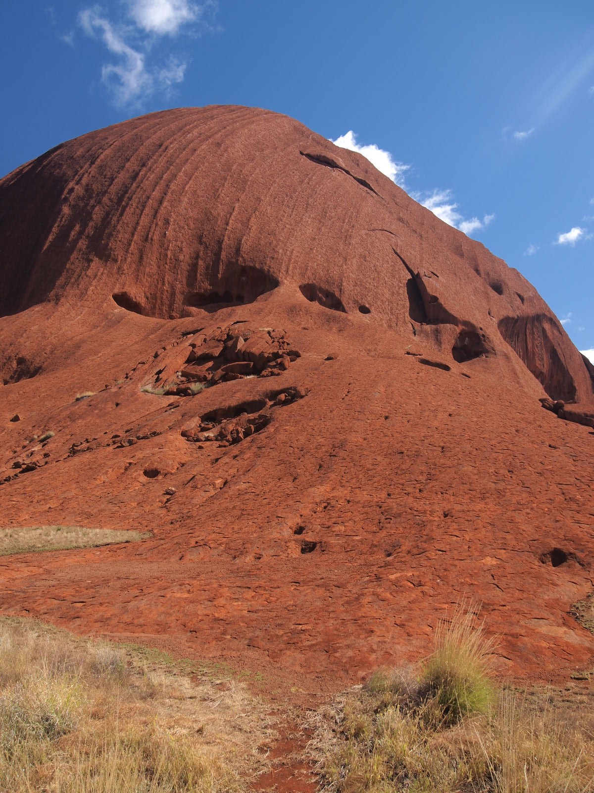 高さ約300mほどの巨大な一枚岩で、その日の気温と降水確率次第では上まで登ることも可能。なお夏の時期は99%登ることはできず、登頂許可が下りるのは大体冬の時期に限られる。私が訪れた時には運良く許可が下りていたのだが、現地の人たちが信仰の対象としているウルルを登ることは止めてほしい・・・と思っていることから遠慮しておいた。気にせずガンガン登っている人もいるけれど。